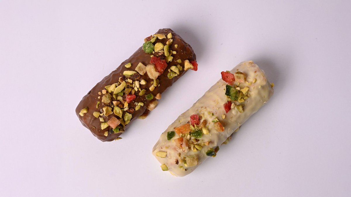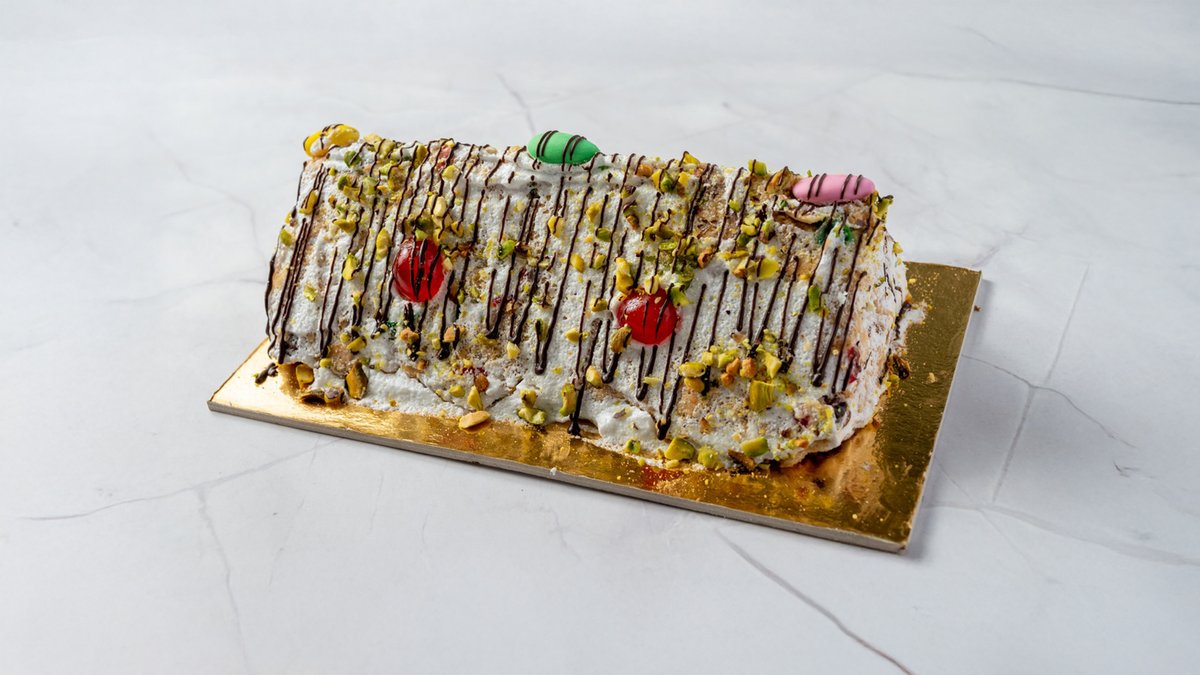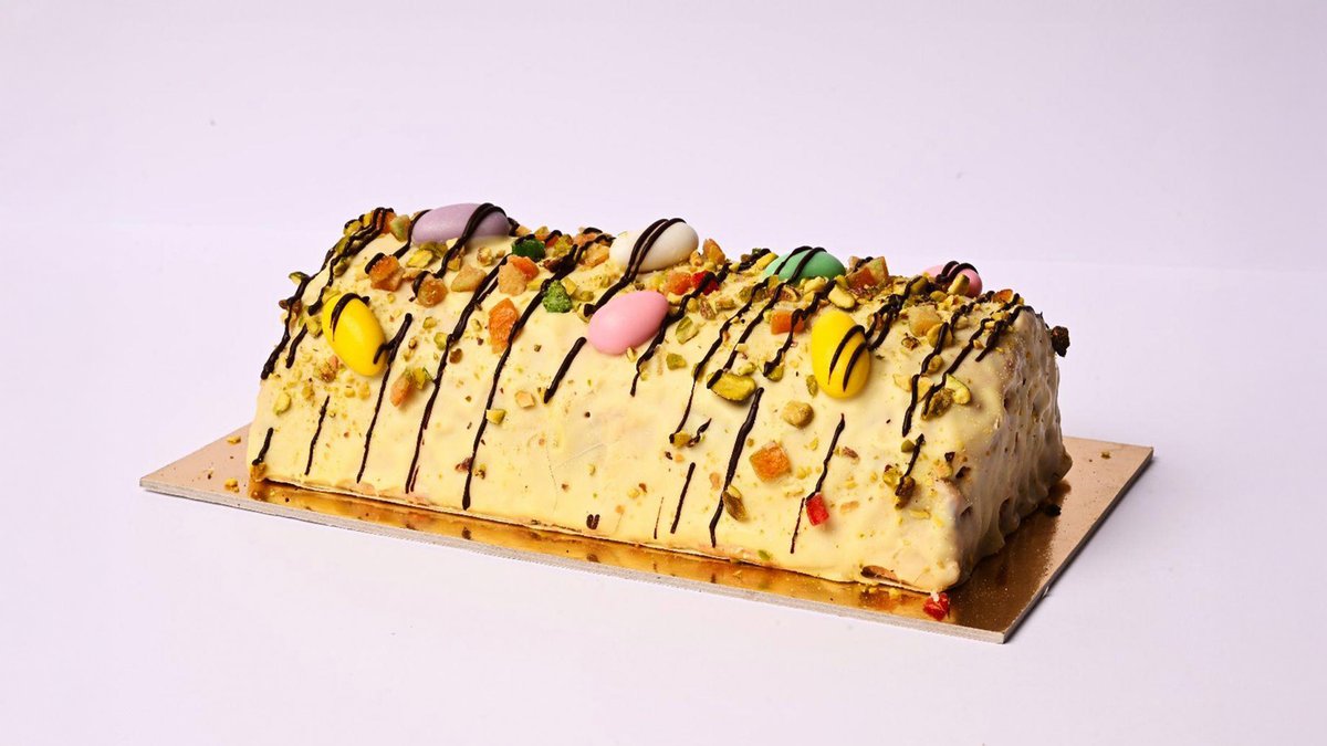 Traditional Maltese Carnival Cake! Made with a mix of candied fruits and cherries, crushed biscuits, meringue and pine nuts. - Covered in Belgian White Chocolate