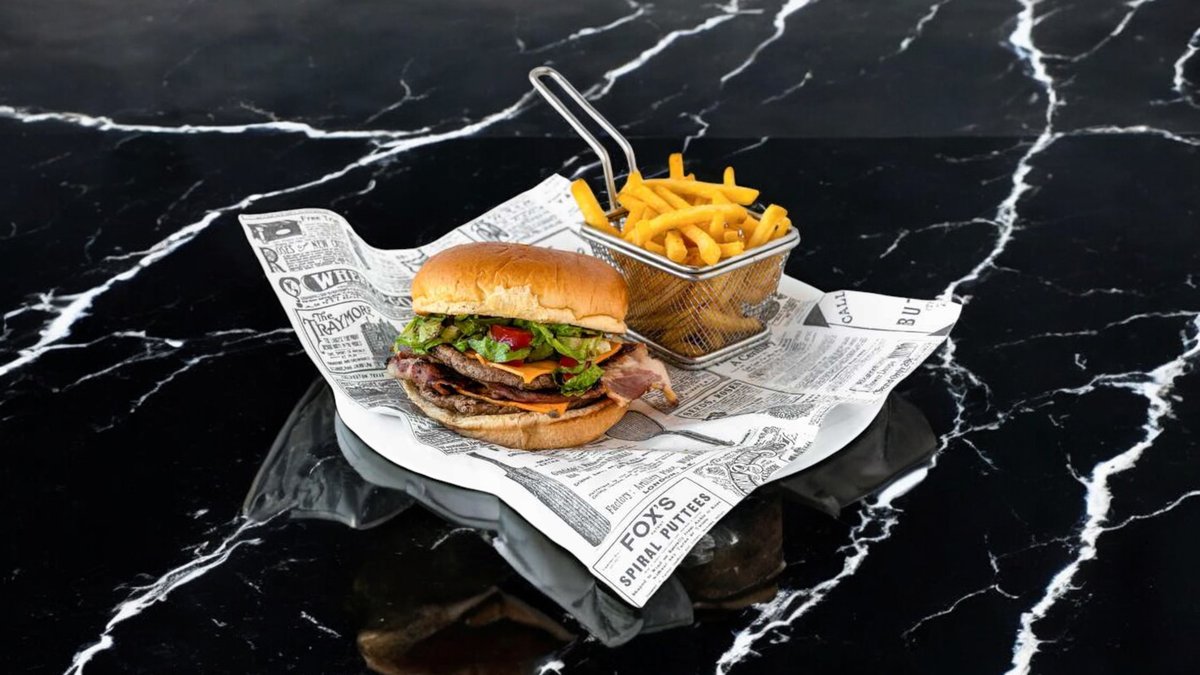 100 % irish angus beef, 200g patty. Served with fries, lettuce, and tomato