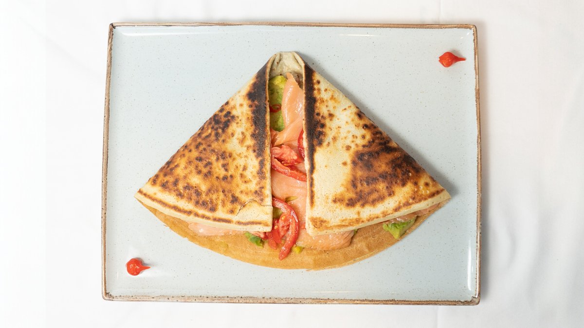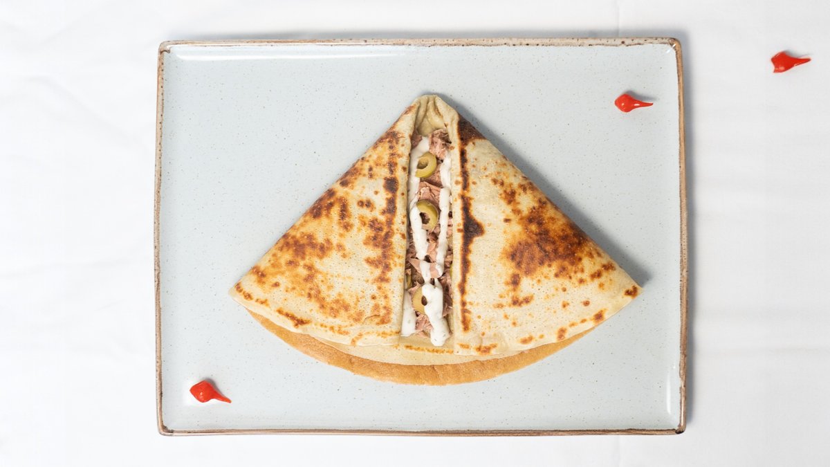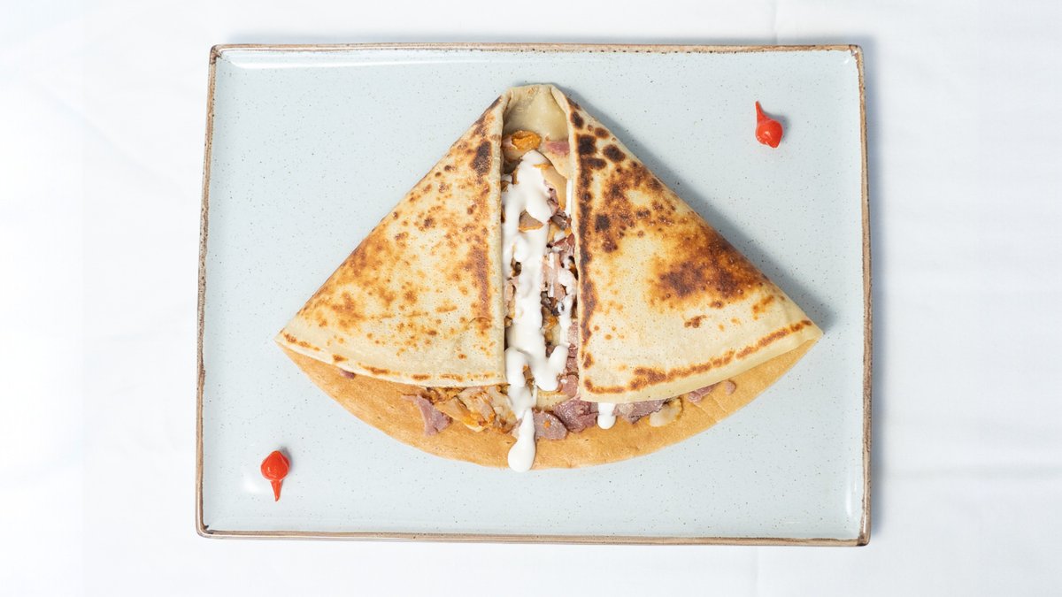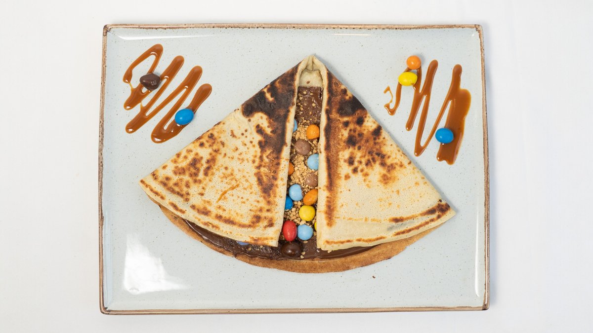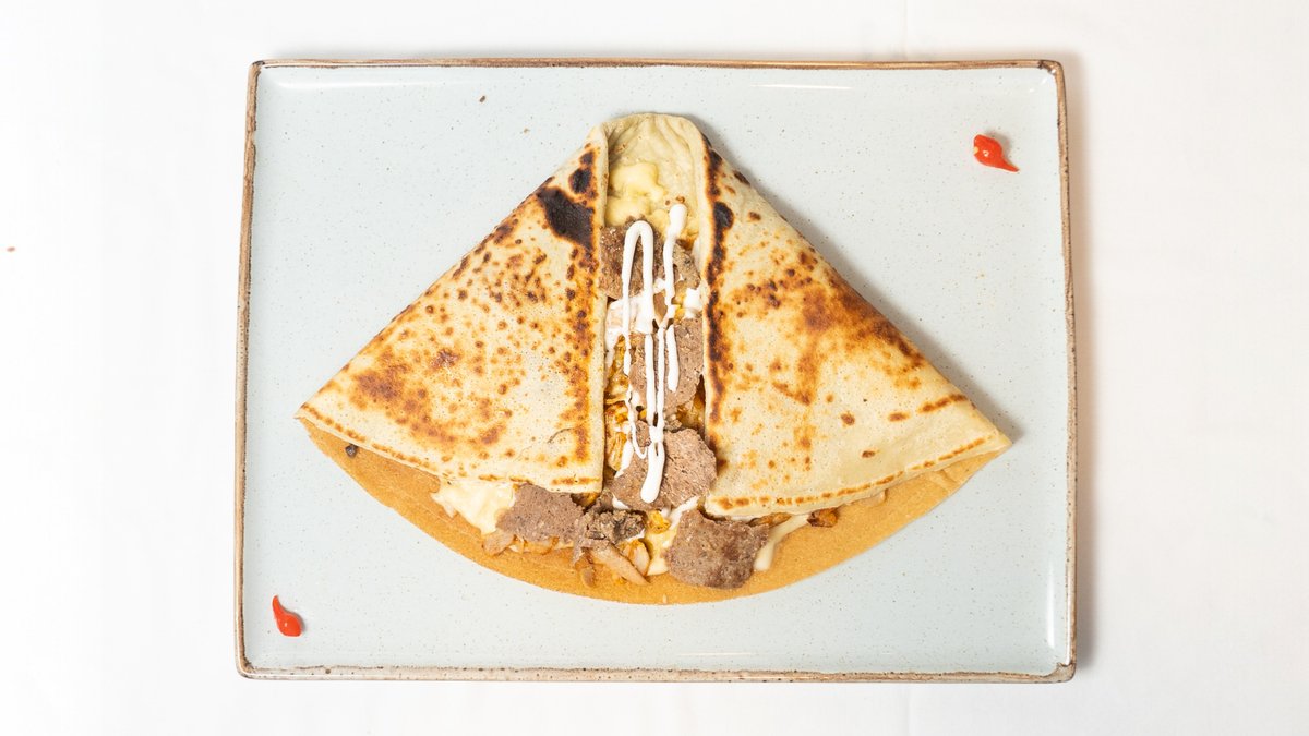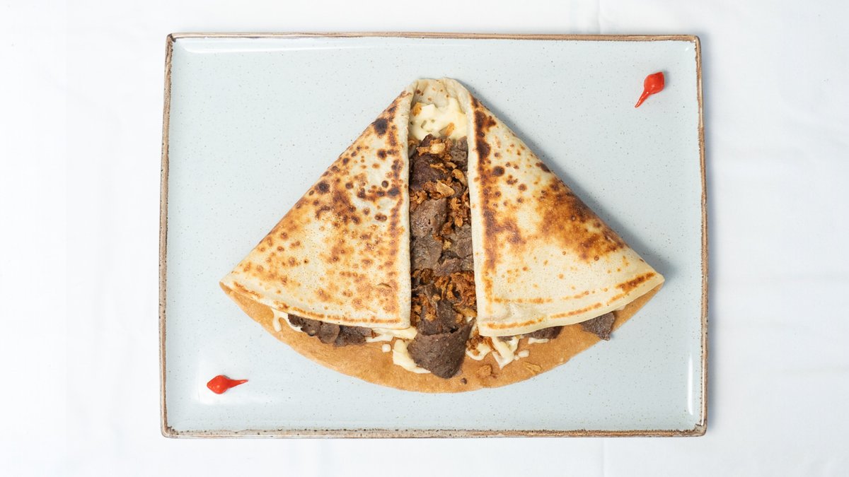 Bread, crispy onions, bacon, sausage, baked beans, edam cheese, mayo and ketchup