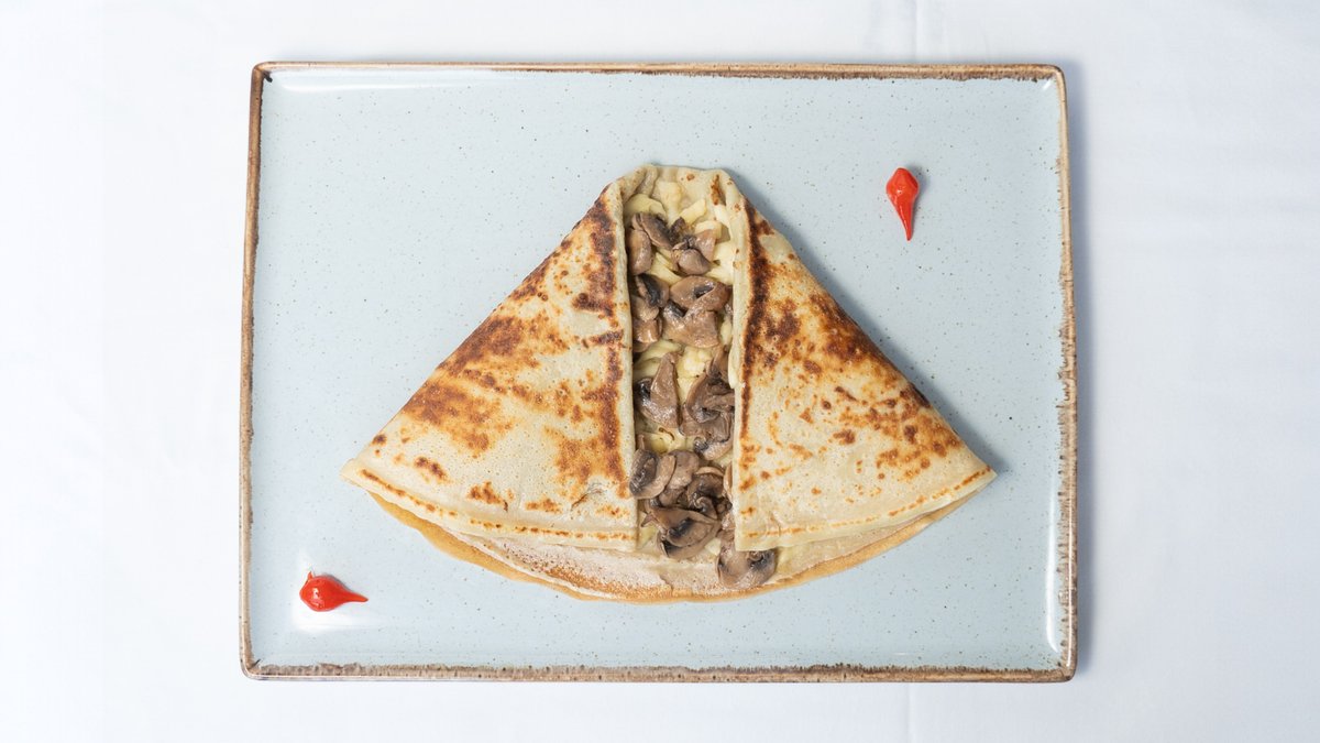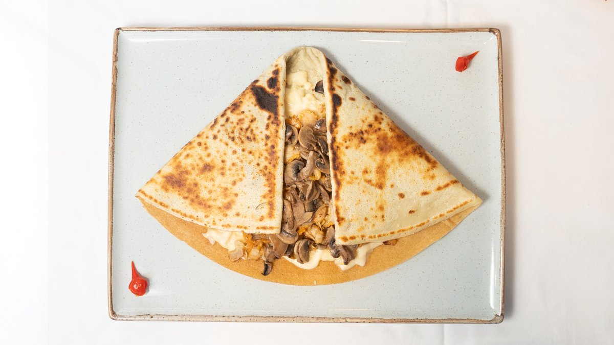 Pepperoni, mushrooms, eggs and mozarella cheese