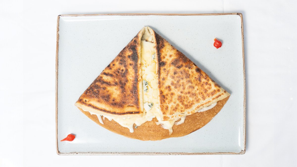 Blue cheese, edam cheese, 100 % mozzarella and parmigiano