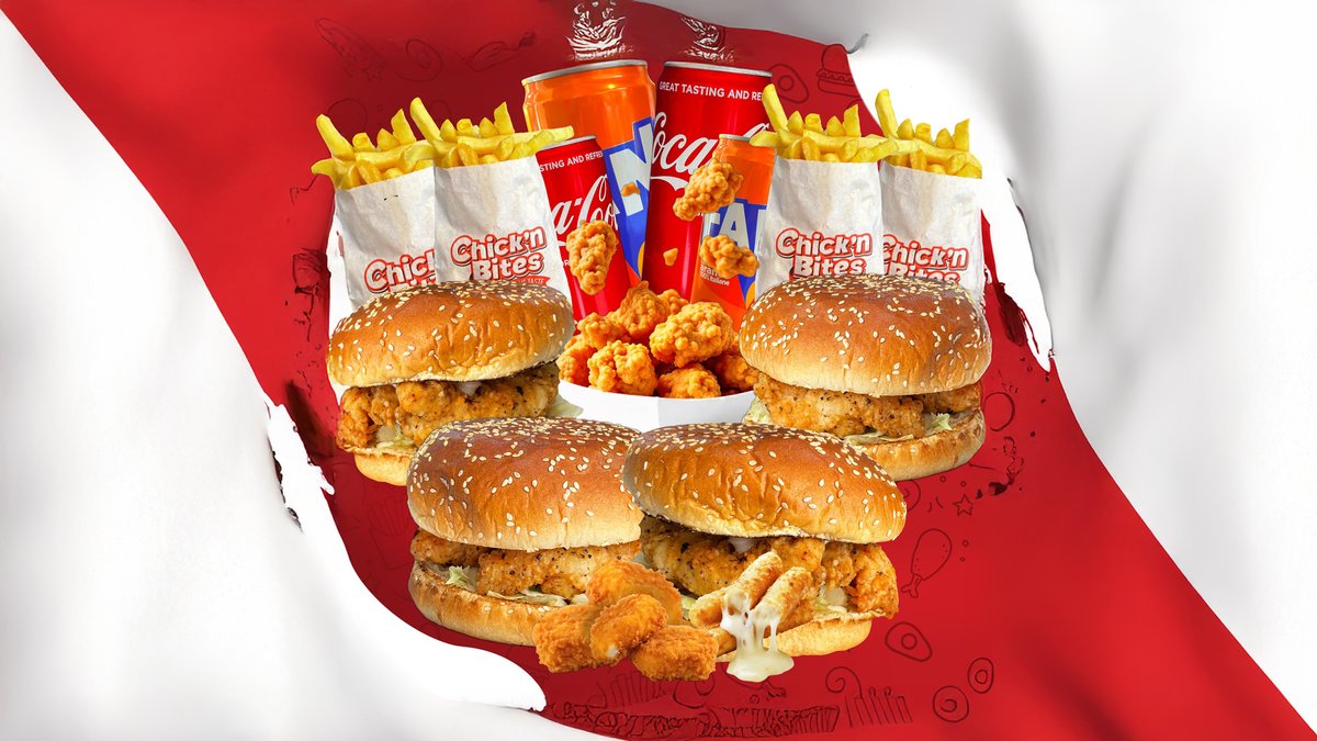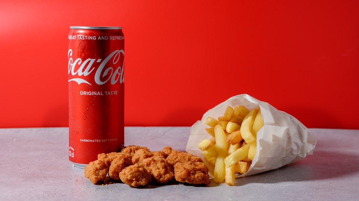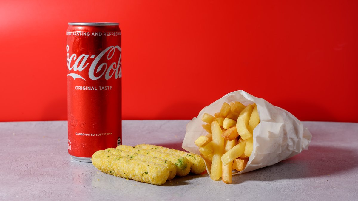 Includes: 5 chicken fillets 5 fries 5 mozzarella sticks 2 large coca cola