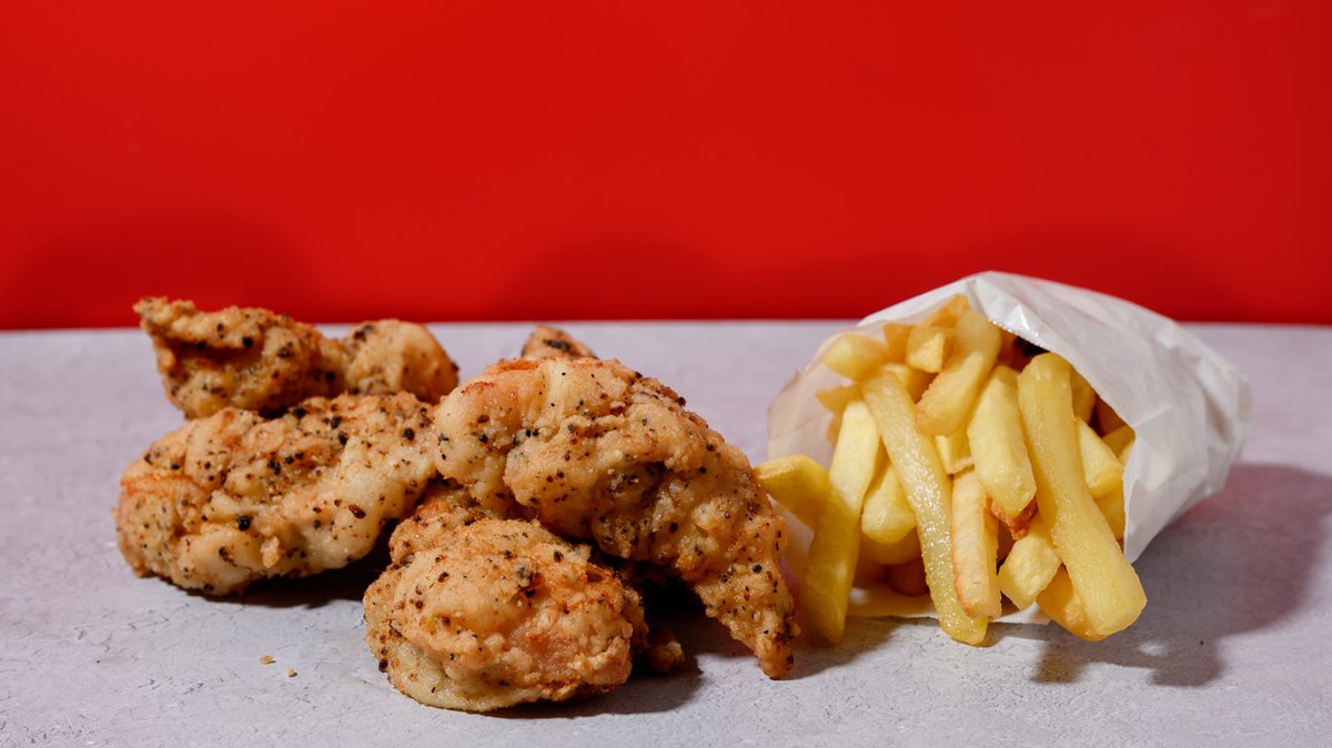 2 Chicken fillets, 2 fries, 3 chicken pieces and 2 drinks
