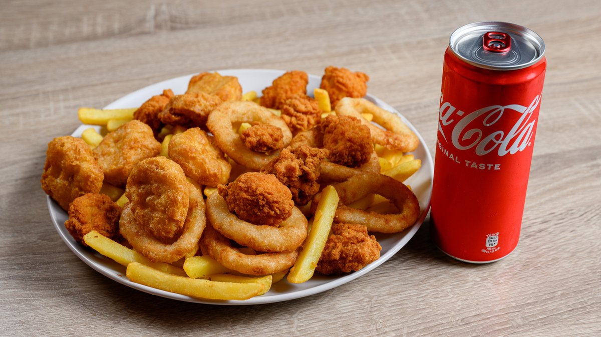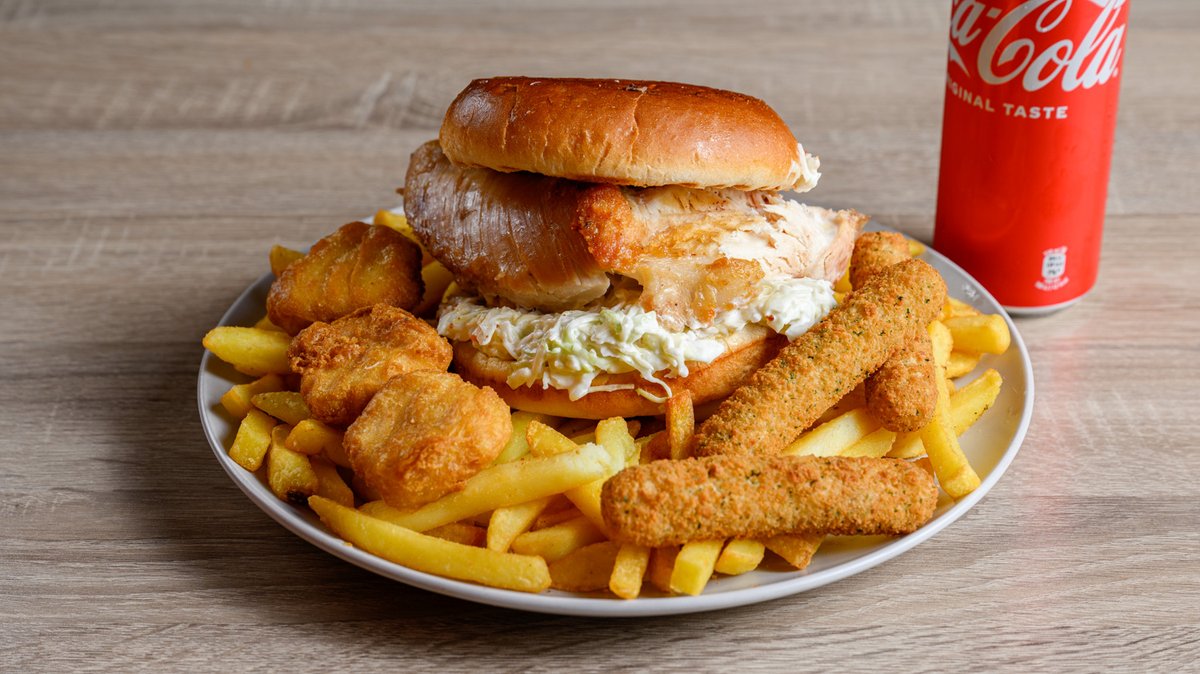 Classic chicken fillet, 3 nuggets, 3 mozzarella sticks, 1 fries and drink