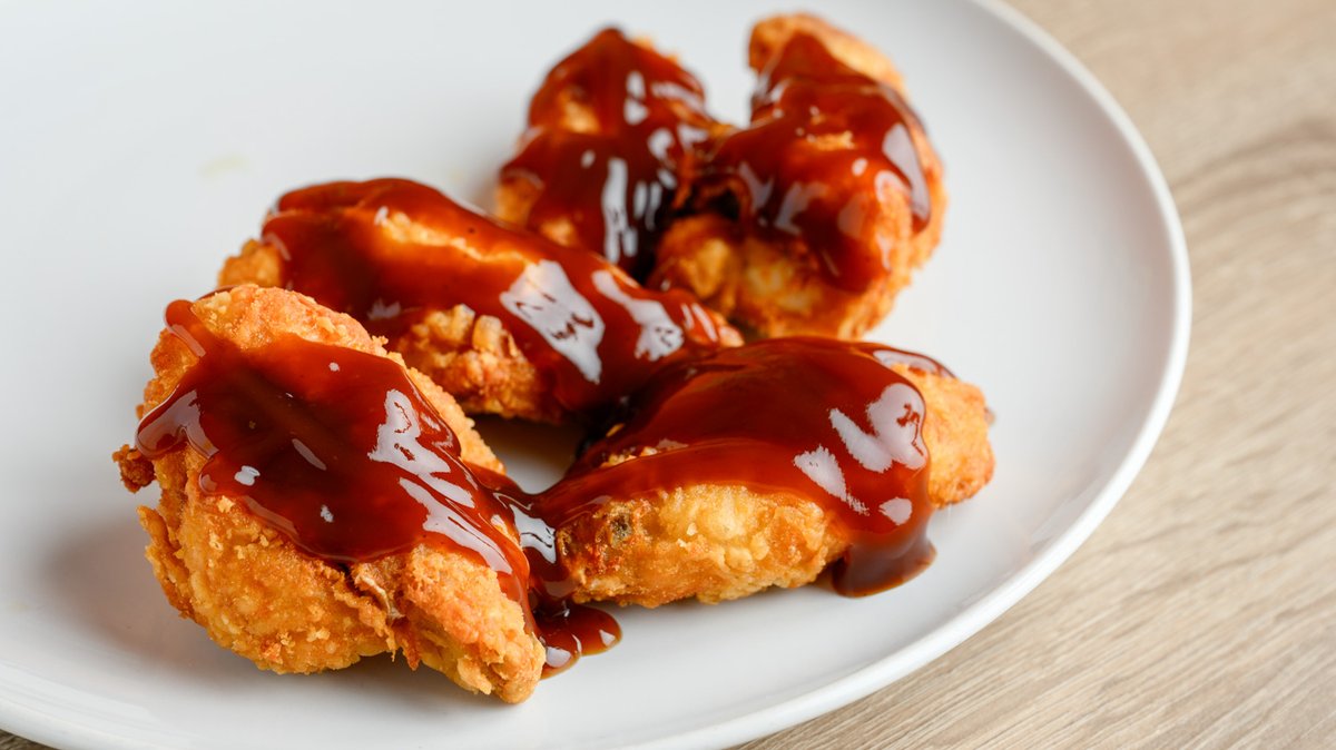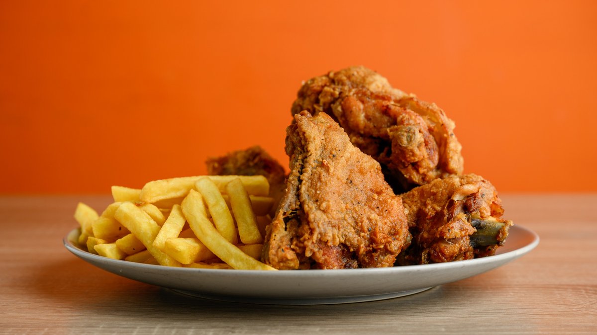2 chicken pieces, 3 hot wings, 3 onion rings, served with fries and drink