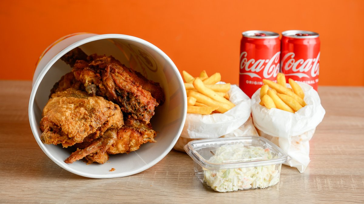 4 classic chicken fillets, 12 nuggets, 20 popcorn, 4 fries, 4 drinks, 2 coleslaws