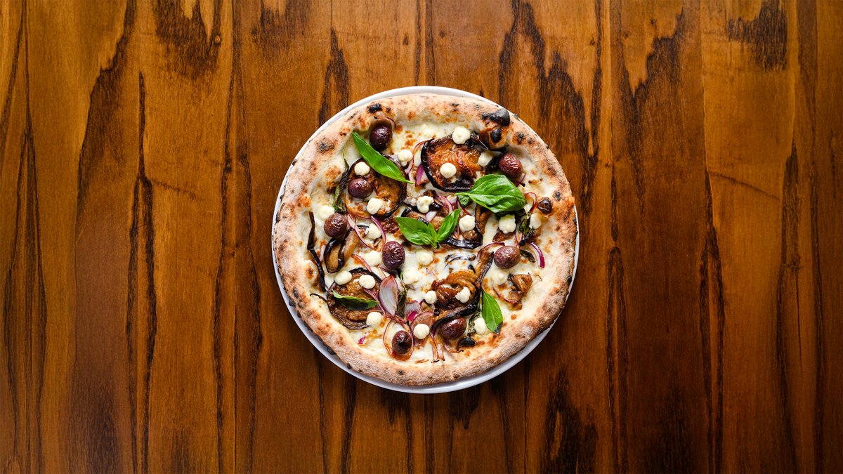 Tomato sauce, mozzarella fior di latte, smoked pancetta, aubergines, oregano and grana shavings