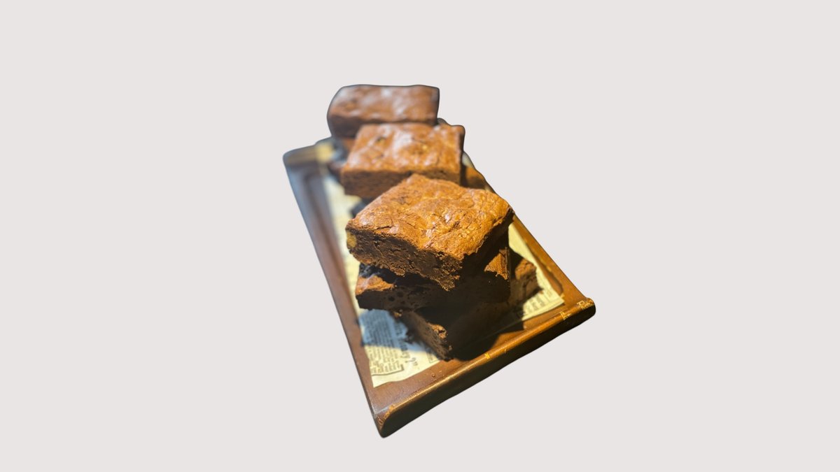 Gluten Free homemade Chocolate and Cookie Brownies served with cream and chocolate syrup. Contain dairy and nuts.