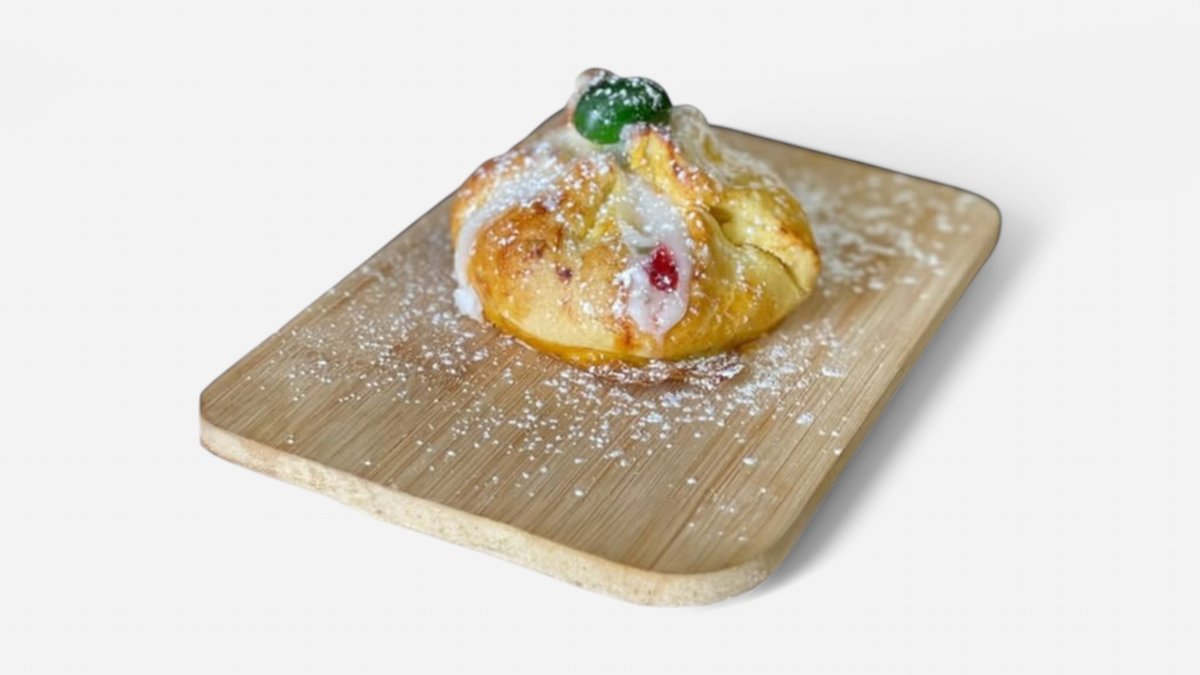 Homemade gluten free sweet ricotta qassata with sugar syrup and candied cherries.