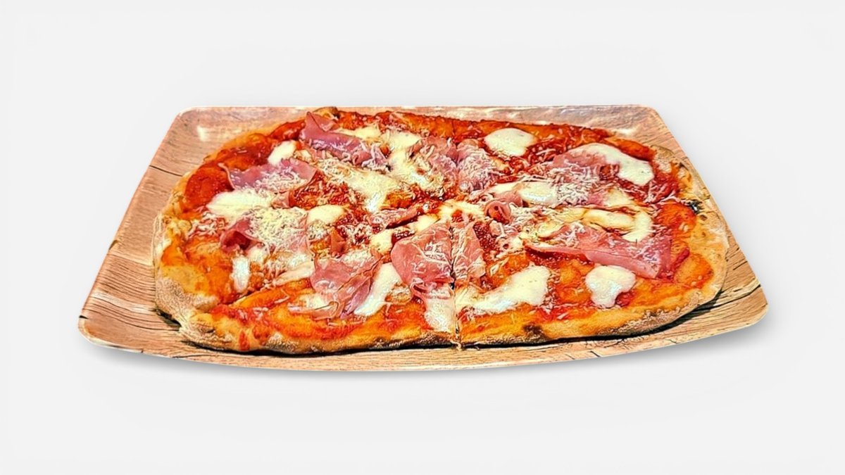 Special Pinsa with Tomato Sauce, Mozzarella, Ham & Grated Pecorino Cheese