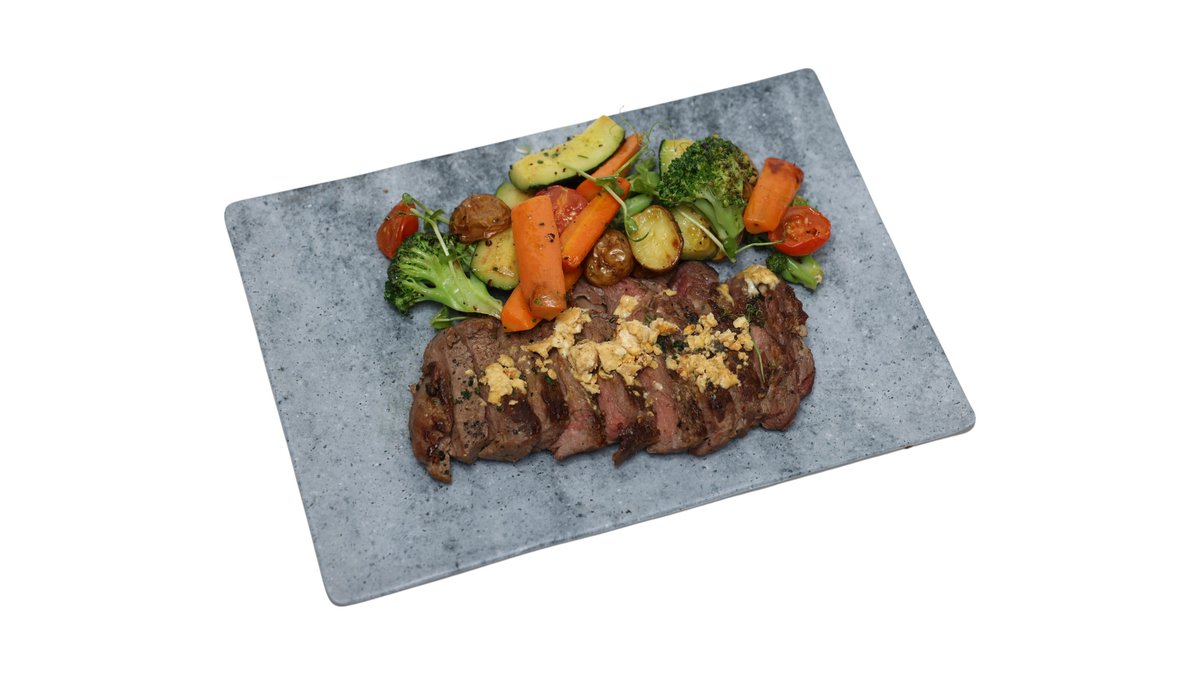 Ribeye steak with French spice butter served with grilled veggie or potato