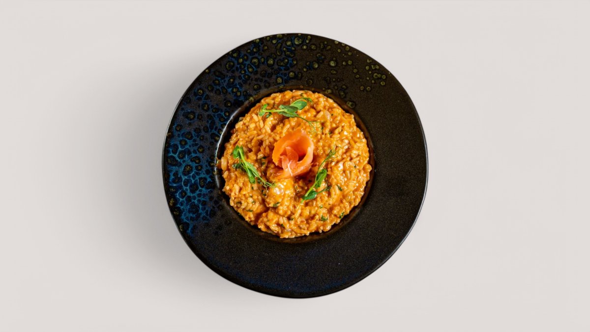 Trottole with Salmon pieces, onions, vodka, cream, caviar with a touch of tomatoes and topped with smoked salmon