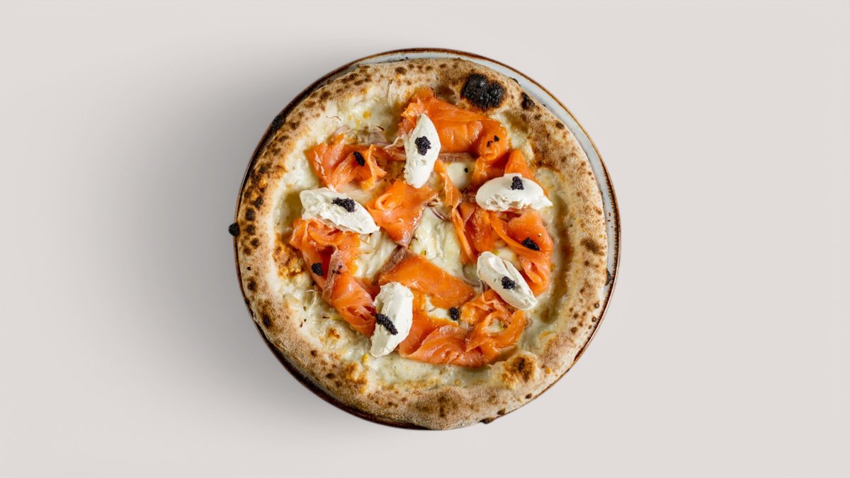 Mozzarella fior di latte, smoked salmon, caviar, onions and cream cheese