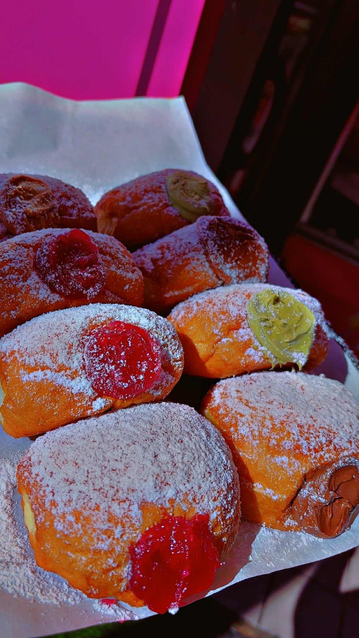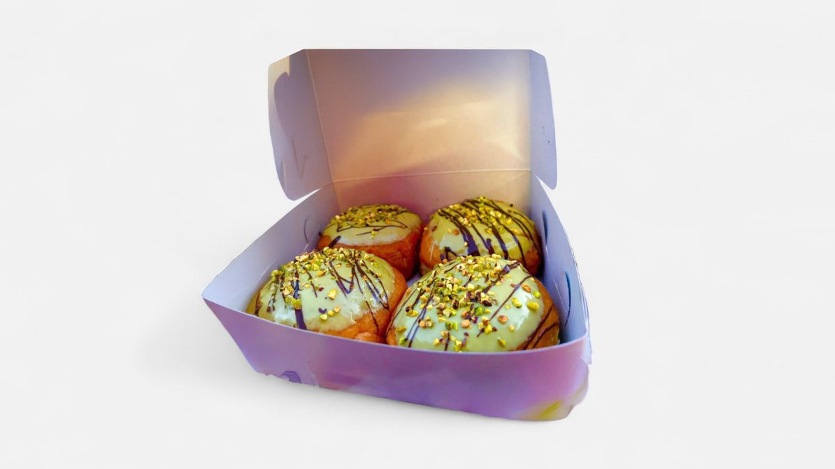 Buy four pistachio doughnuts and four kinder doughnuts and get two nutella doughnuts for free