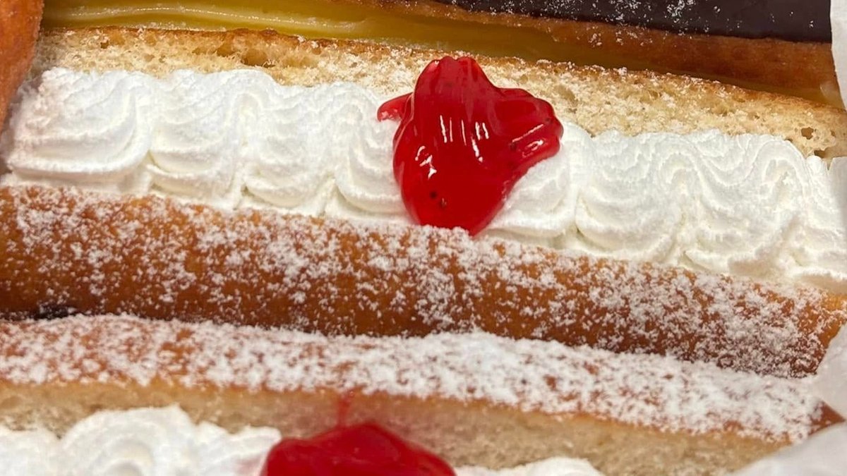 Filled with custard and pistachio cream on top