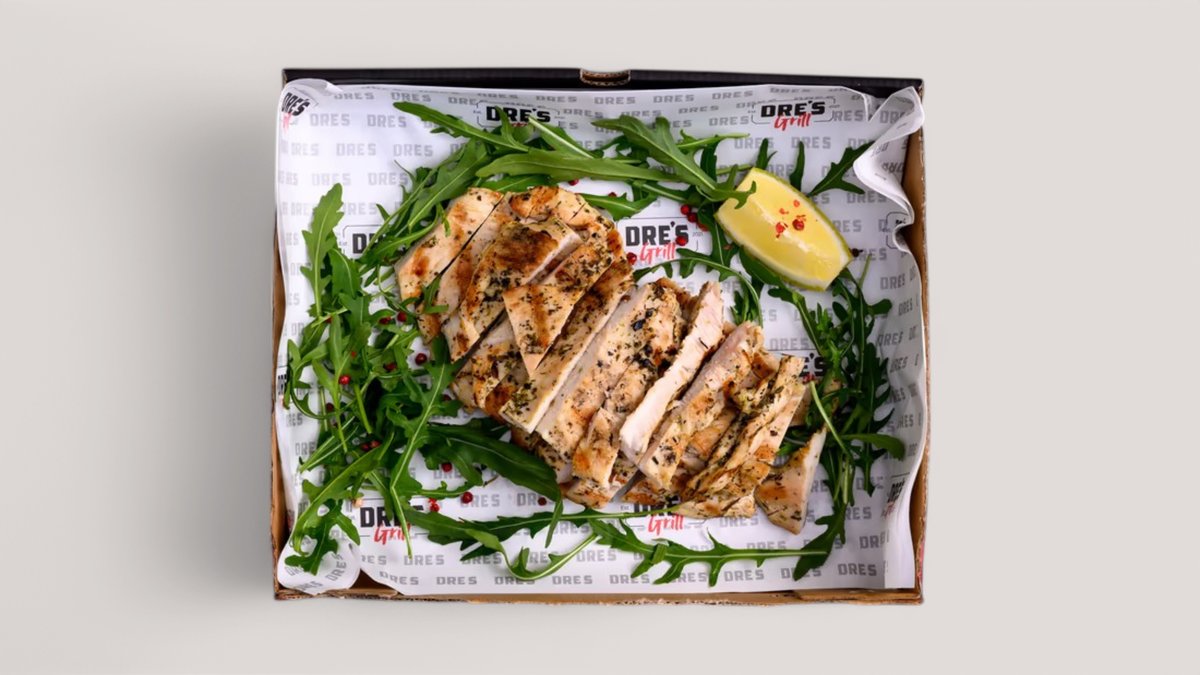 250g chicken breast marinated in mediterranean mix or smoked paprika. Served with mixed leaves. If you have any questions regarding allergies or intolerances related to ingredients, please contact us