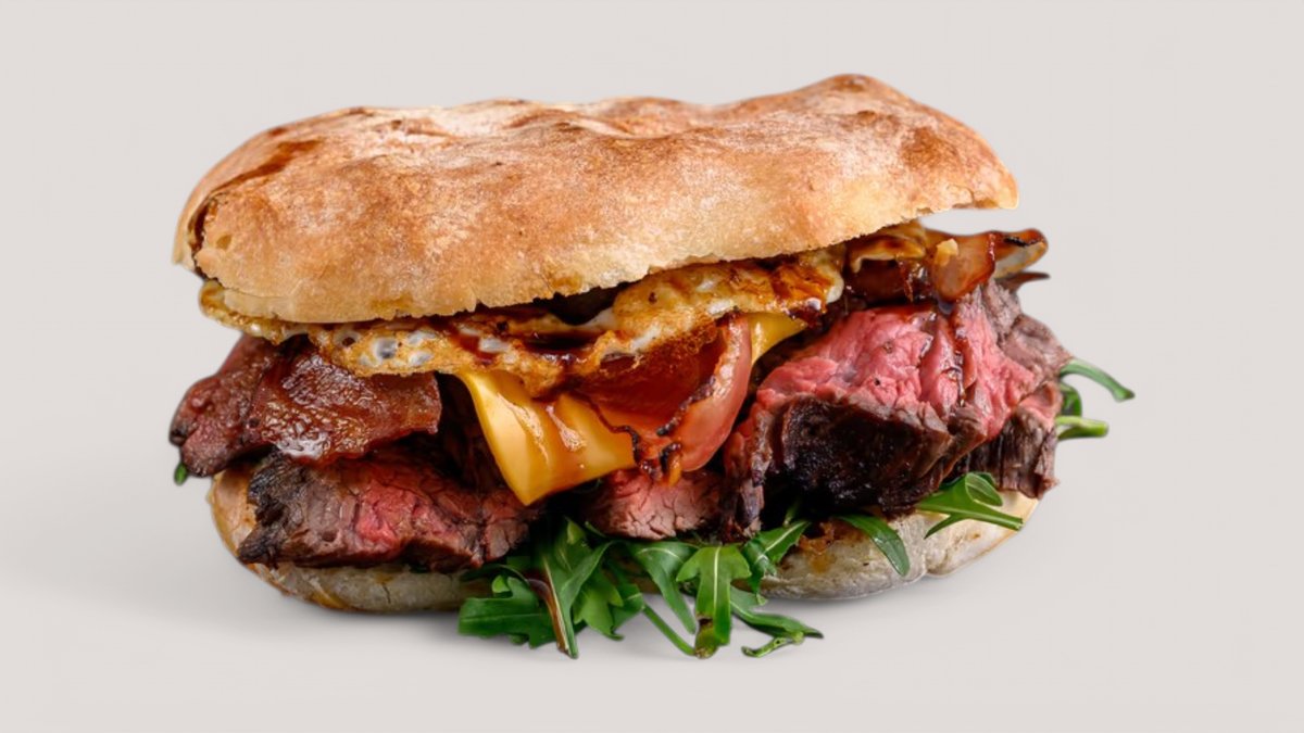 Ciabatta bun, homemade spiced rum sauce, tagliata, rucola, tomatoes, american cheese, egg, and crispy bacon. If you have any questions regarding allergies or intolerances related to ingredients, please contact us
