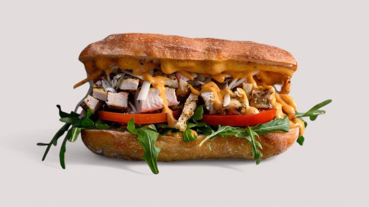Ciabatta bun, homemade dre's sauce, rucola, tomatoes, grilled chicken, and parmiggiano. If you have any questions regarding allergies or intolerances related to ingredients, please contact us