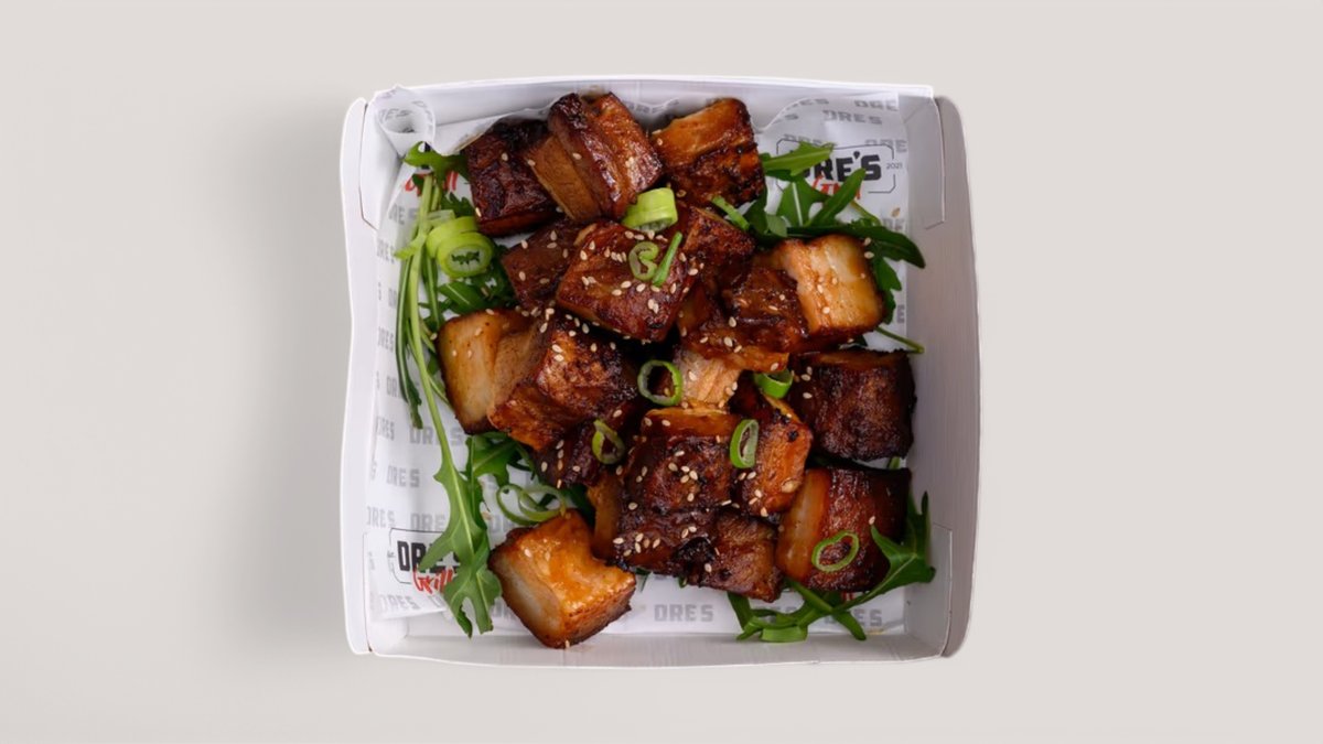 (350g-400g) slow cooked and deep fried pork belly, topped with sesame seeds and spring onions. If you have any questions regarding allergies or intolerances related to ingredients, please contact us