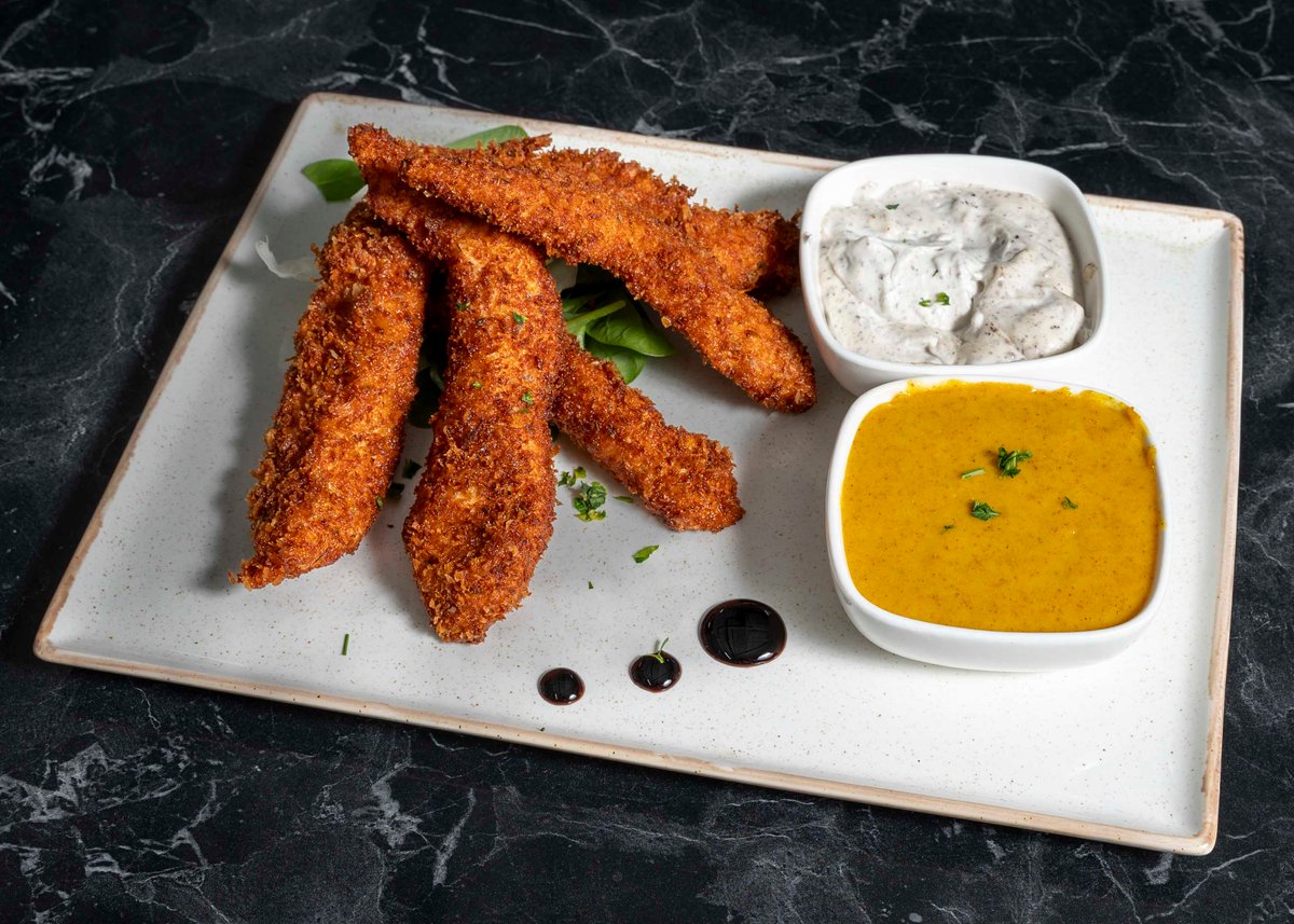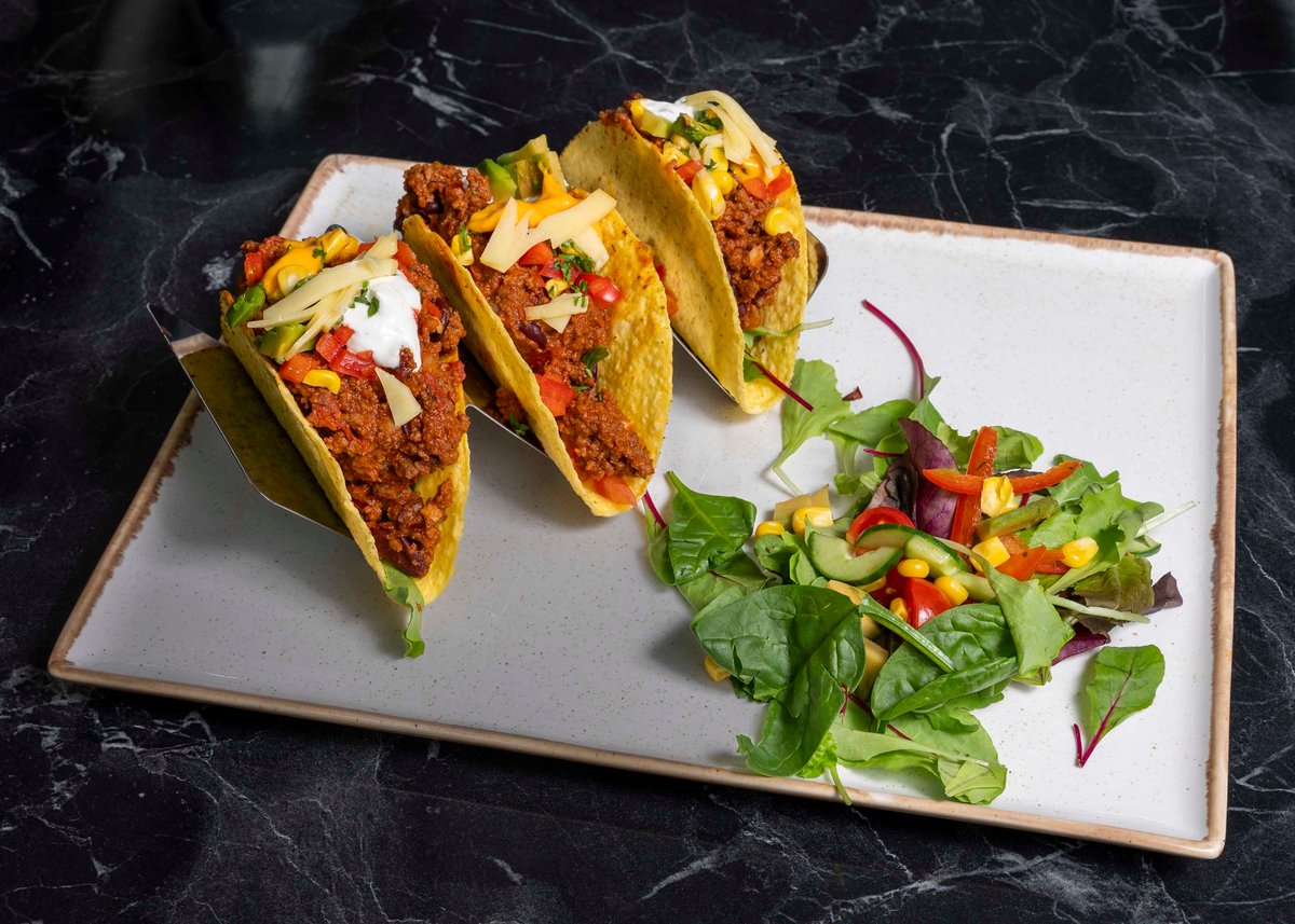 3 tacos, bbq pulled pork, cream cheese, avocado and sour cream and served with fries