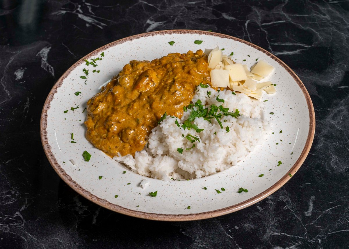 Chicken thighs, cheese, parma ham, boiled egg and curry mayo sauce