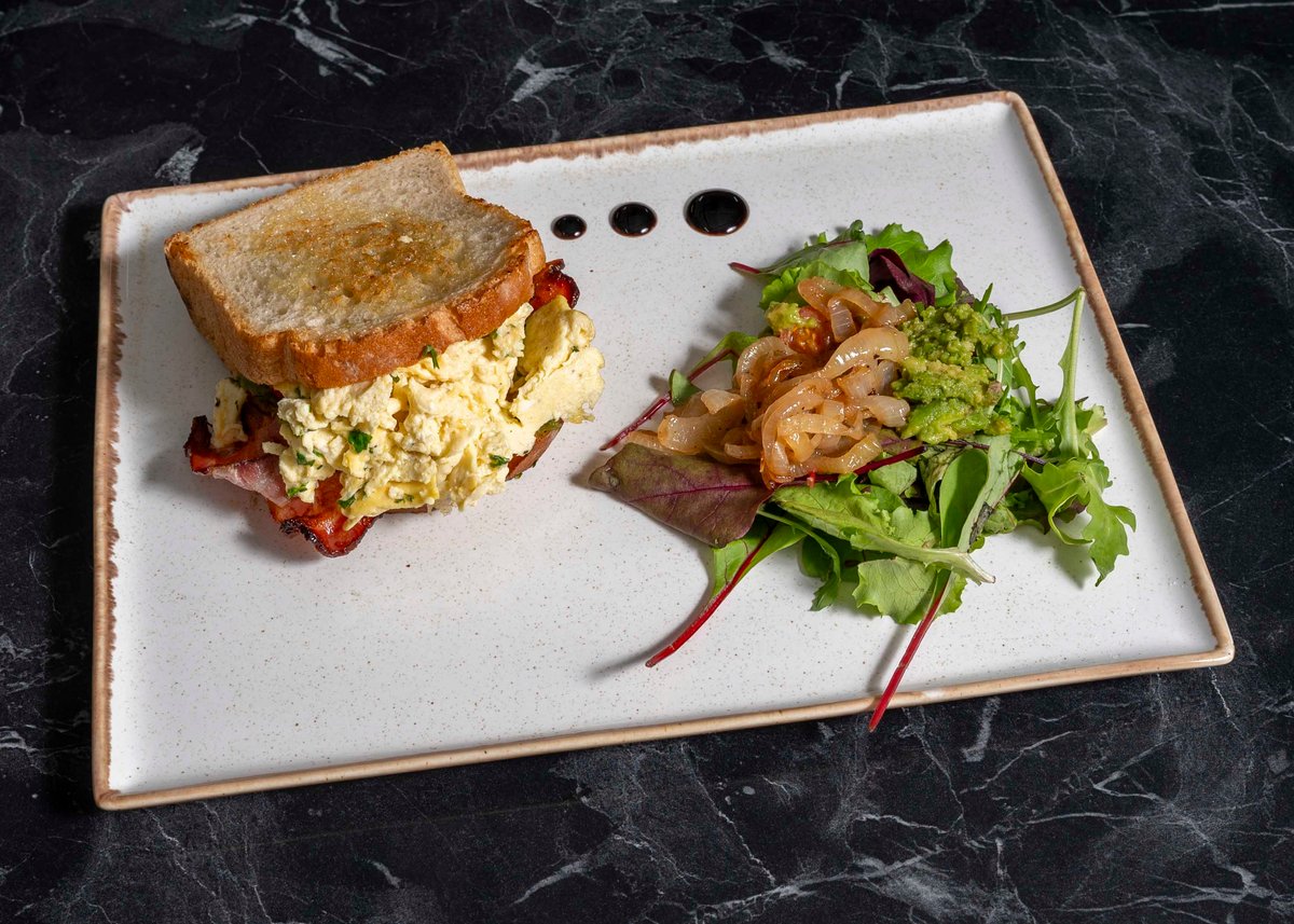 Brioche loaf, avocado, scrambled egg and stracciatella