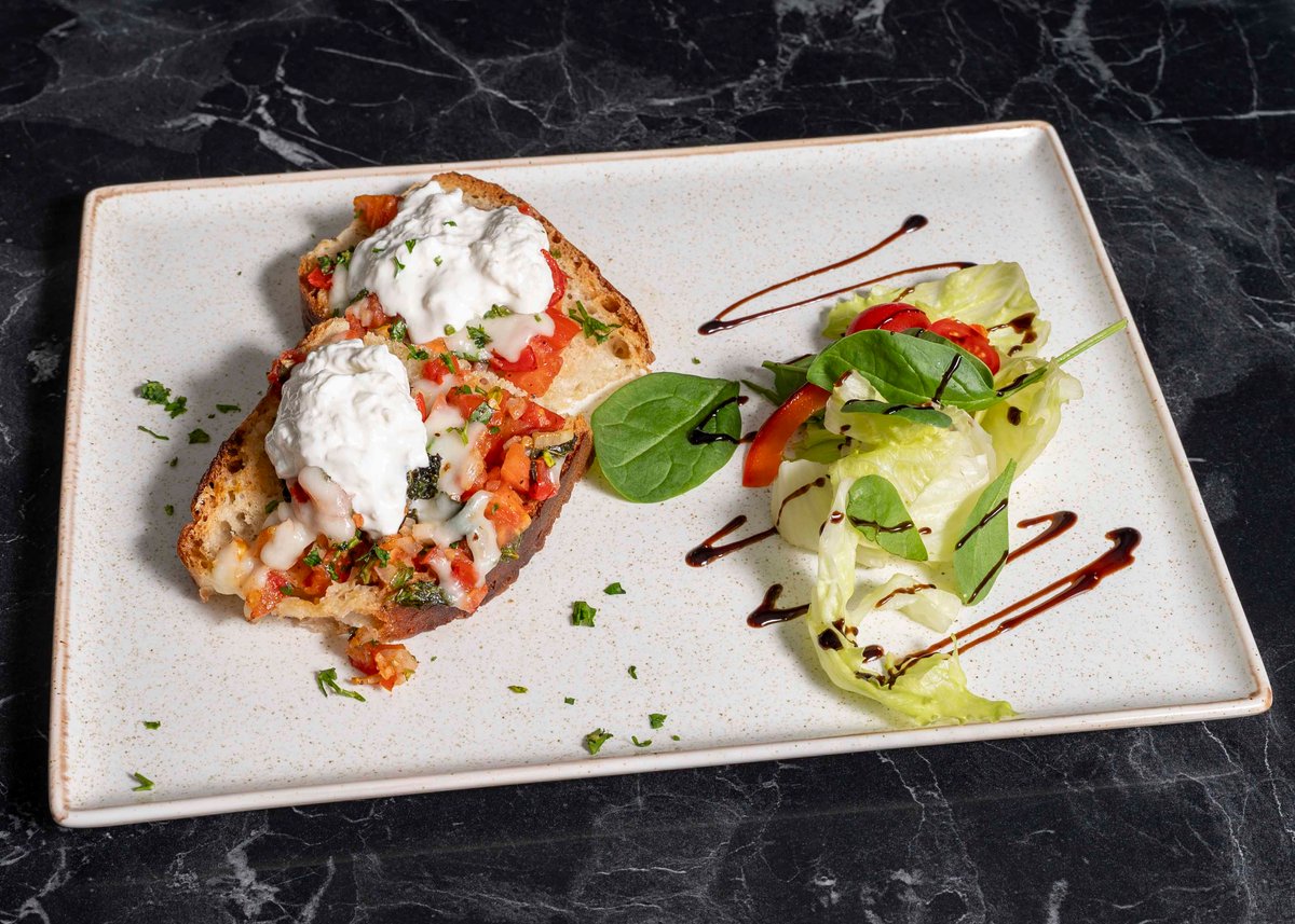 Maltese bread, tomato mix, mozzarella, olive oil and basil