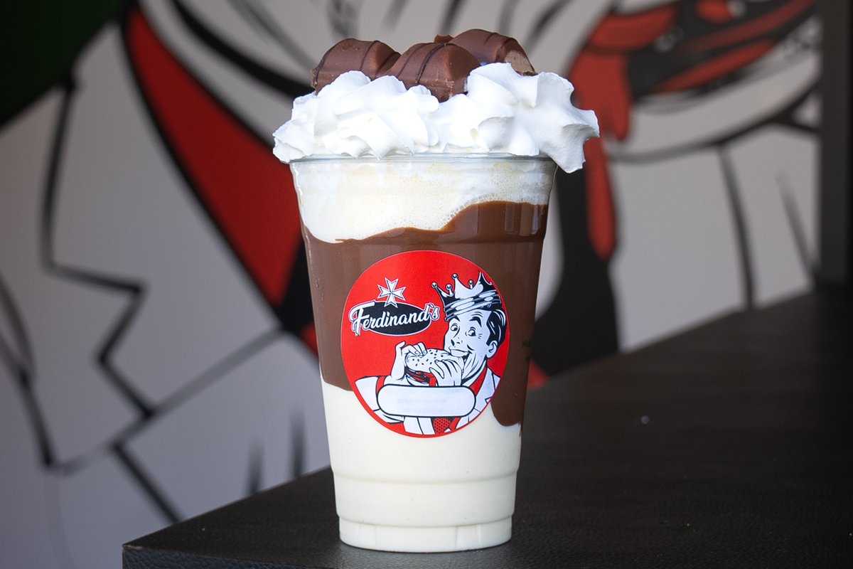 Four bite-sized cheeseburgers stacked in a cup with soft sesame buns, juicy beef patties and melted cheese, served with a side of Ferdinand’s creamy cheese sauce for dipping. Built for sharing… or keeping all four to yourself.