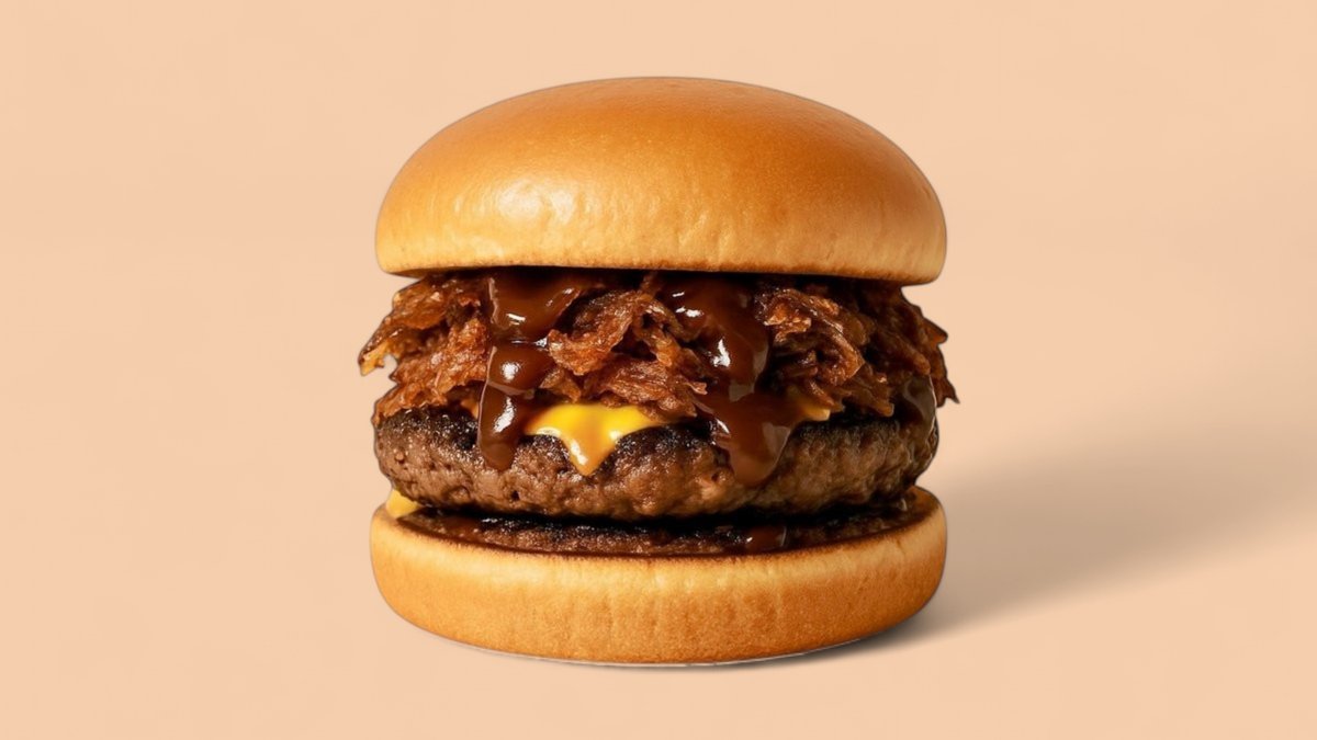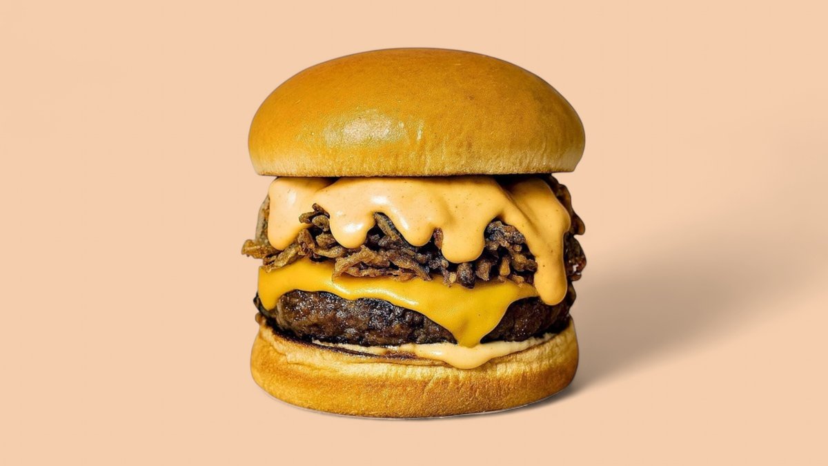 Juicy beef patty smothered in creamy American cheese and topped with crispy fried onions. Comforting, rich and perfectly melty with a satisfying crunch. Served with fries.