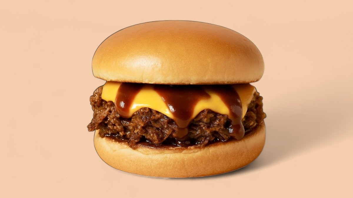 Tender slow-cooked pulled pork layered with melted American cheese and finished with a rich hickory BBQ sauce, all served in a soft brioche bun. Sweet, smoky and deeply satisfying. Served with fries.