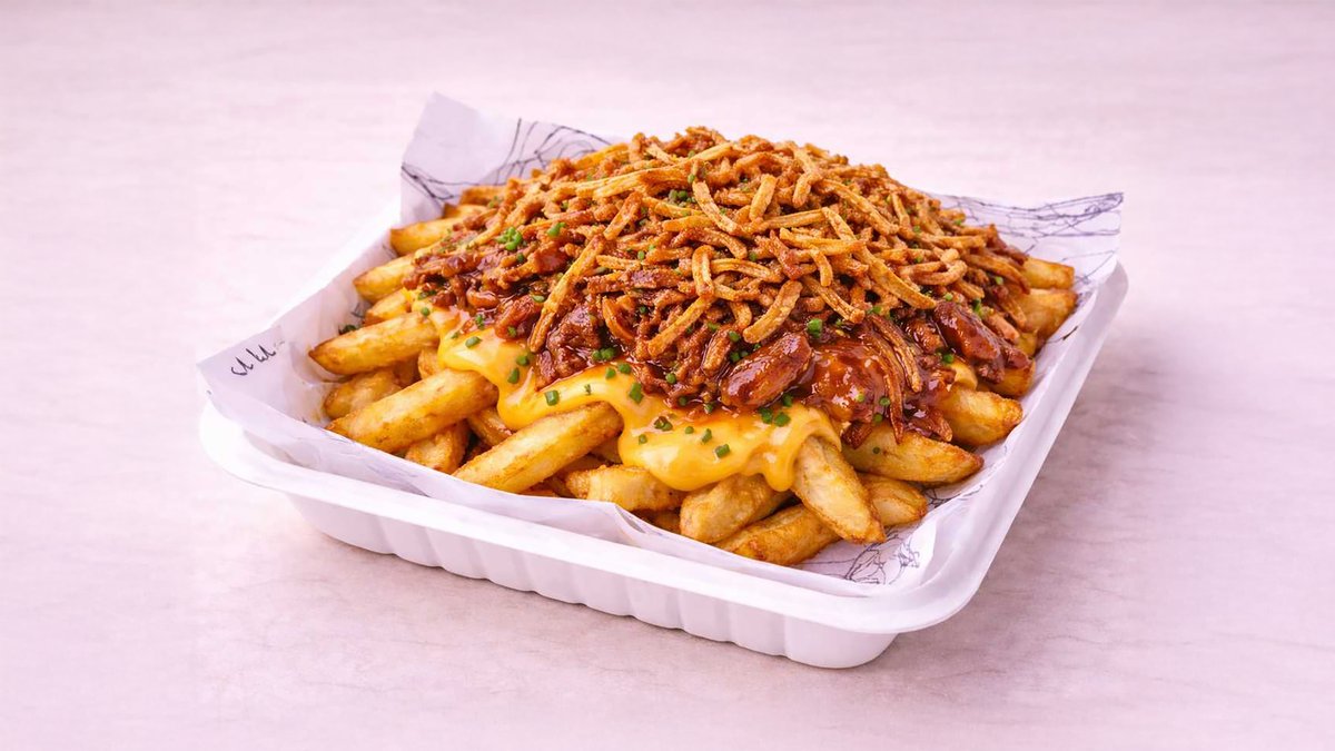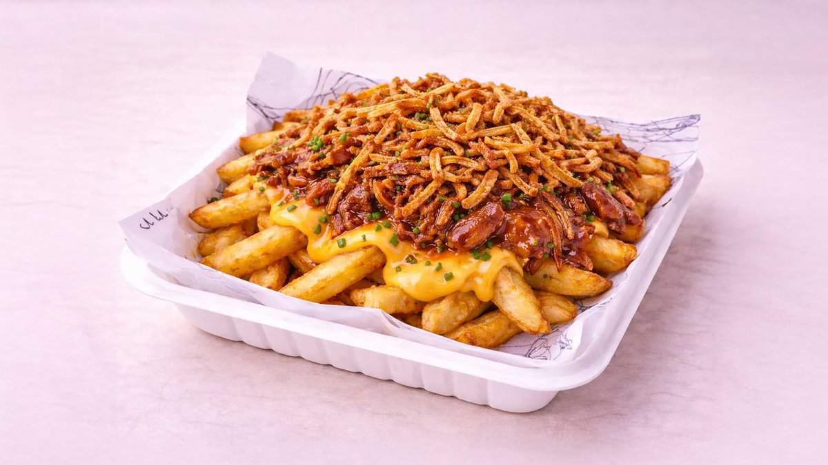 Golden fries drenched in warm cheese sauce, slow-cooked pulled pork & crispy onions.