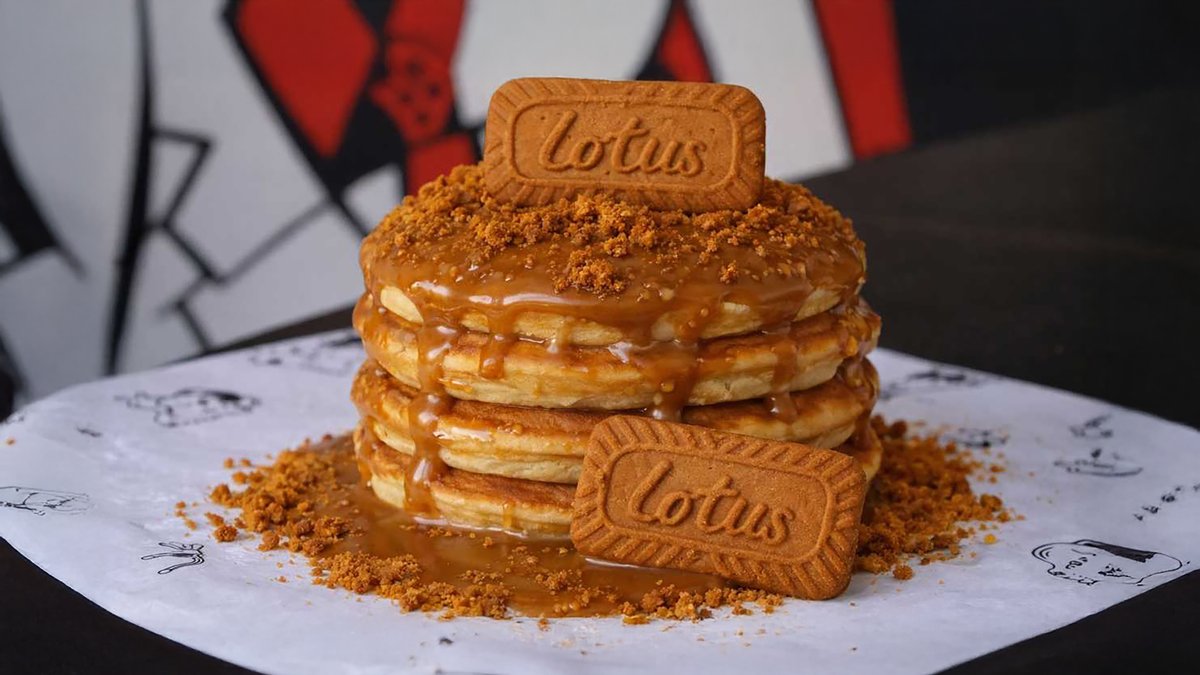 Fluffy pancakes stacked and generously drizzled with warm Lotus Biscoff sauce, finished with crushed Biscoff crumbs and topped with Lotus biscuits. Rich, indulgent and made for serious sweet cravings.