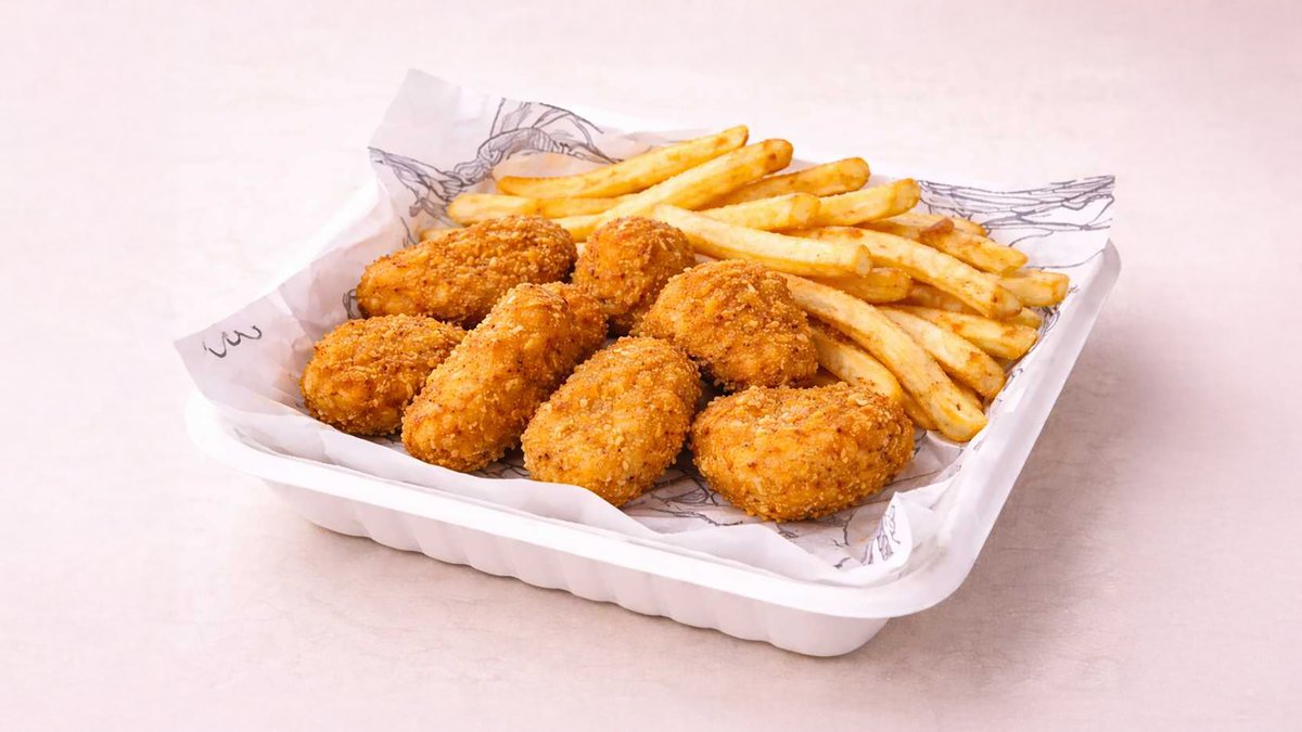 Crispy chicken breast nuggets served with fries — an all-time family favourite.