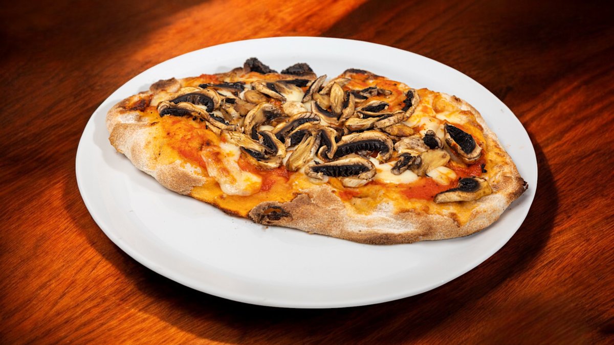 Tomato sauce, mozzarella fior di latte, fresh mushrooms and extra virgin olive oil