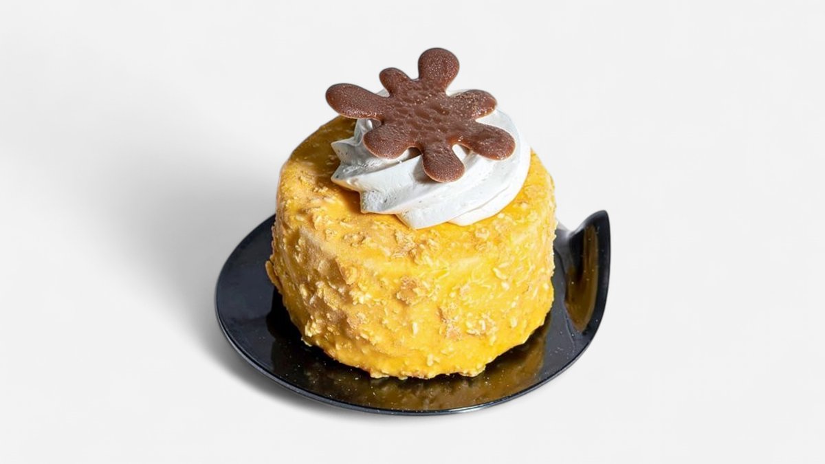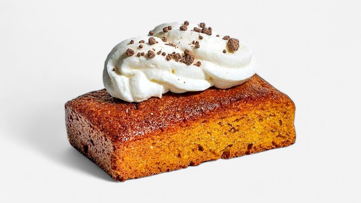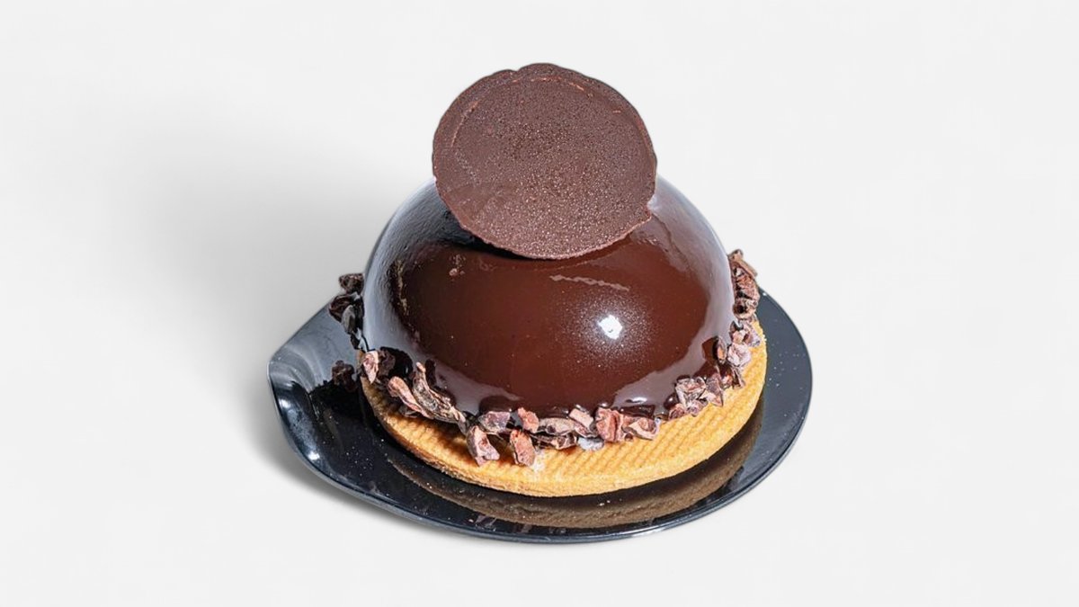 Moist carrot cake with walnut pieces, topped with smooth cream cheese frosting and crushed chocolate soil. A perfect balance of warm spices and rich texture. Allergens: Contains gluten, eggs, dairy, nuts (walnuts). May contain traces of other nuts and soy.