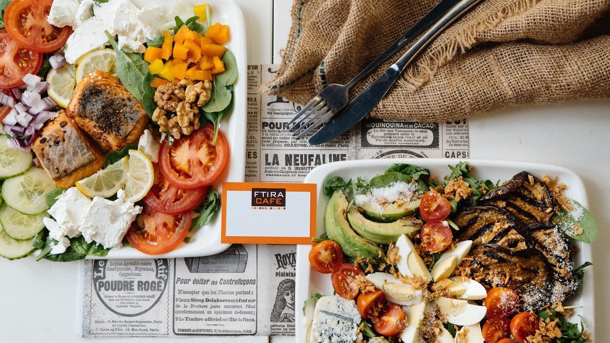 Served on a bed of mixed lettuce, ratatouille, roasted broccoli and boiled eggs