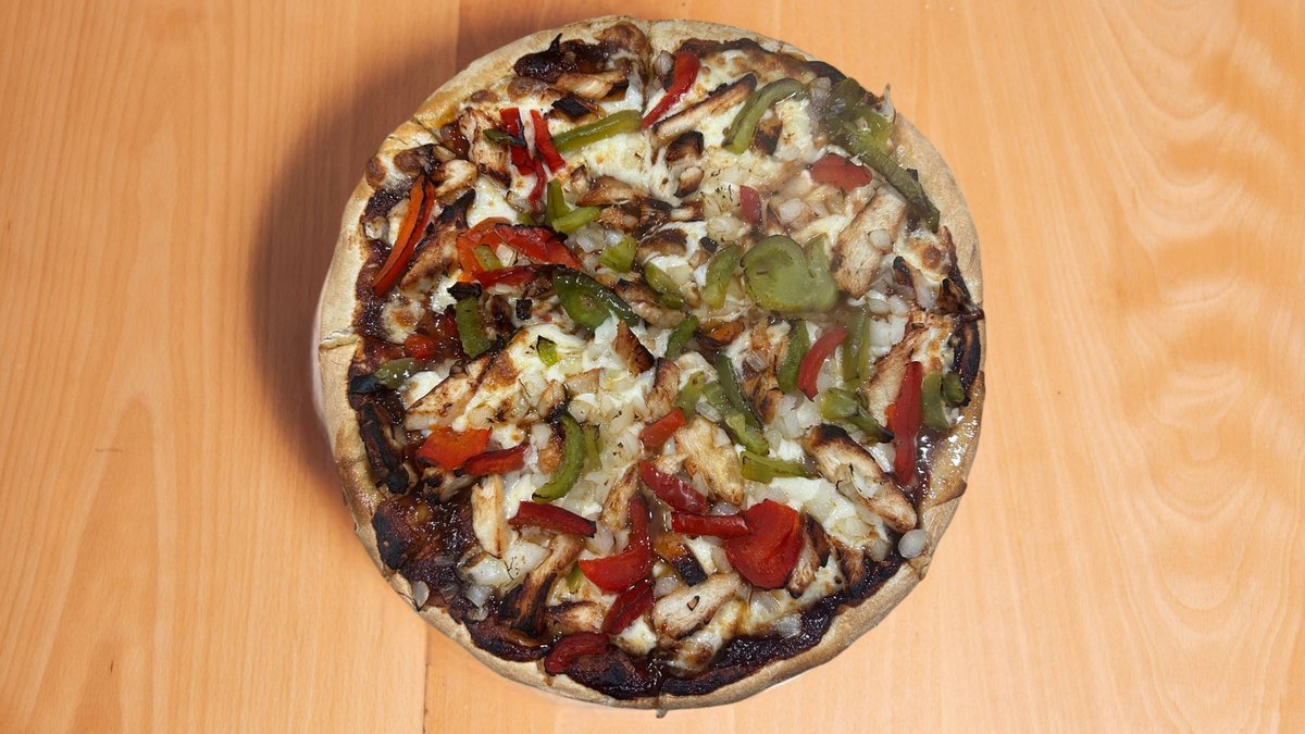 Spicy barbecue sauce, diced chicken, peppers and onion