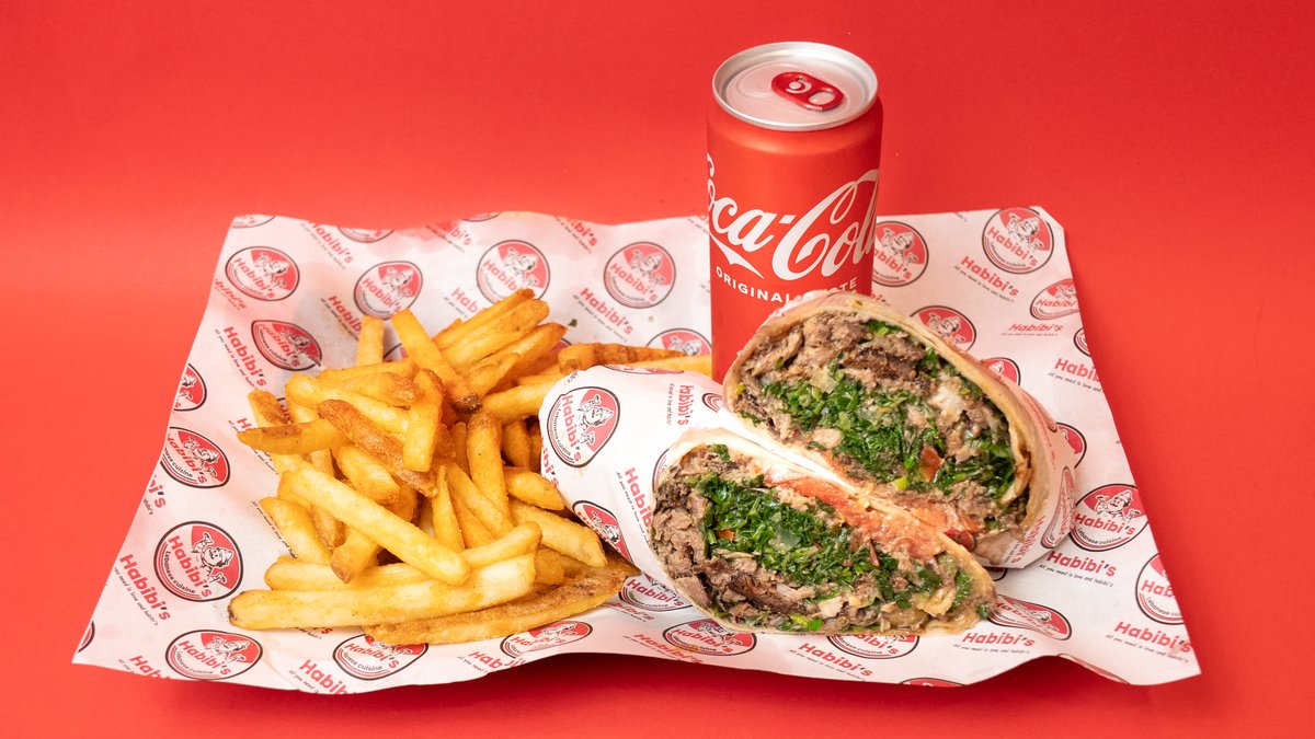 Savor our classic Lebanese beef shawarma combo, complete with a flavorful wrap, crispy fries, and a refreshing soft drink. Enjoy the combo deal