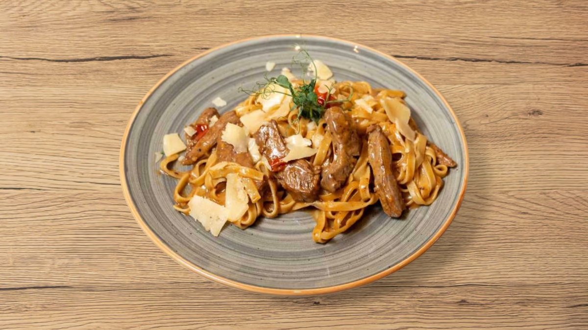 Beef, cherry tomato, onion, gravy sauce with a touch of cream and truffle paste