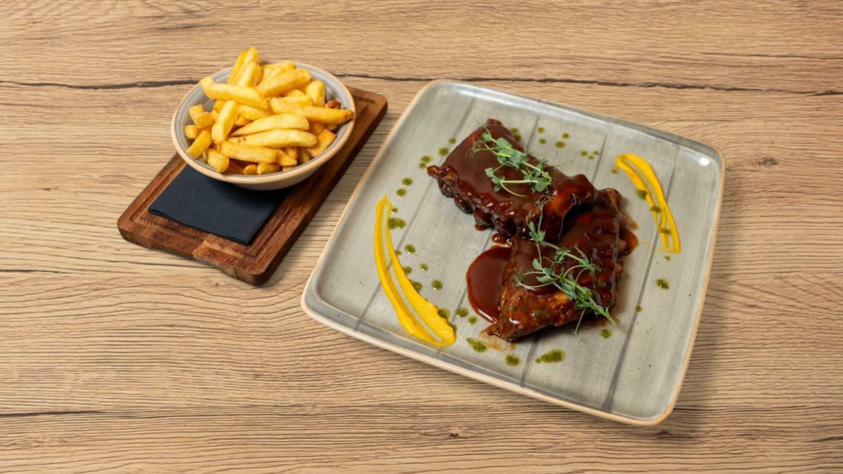 In-house barbecue sauce, served with fries