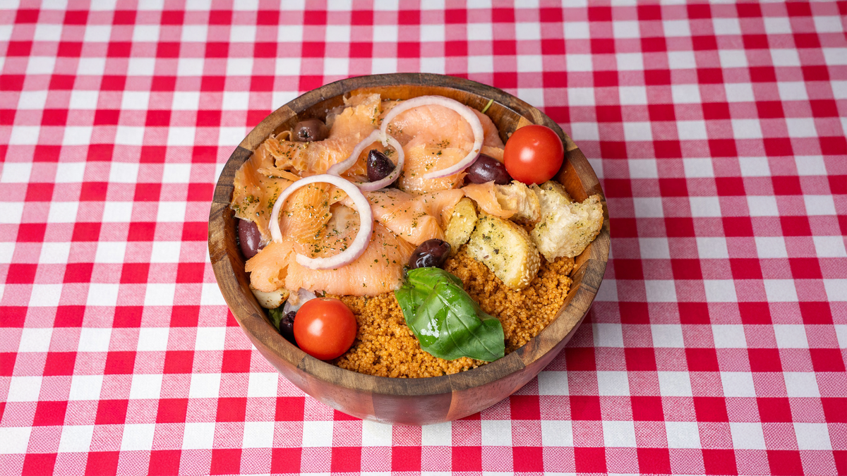 Tuna Mix, Special house dressing, couscous & salad mix
