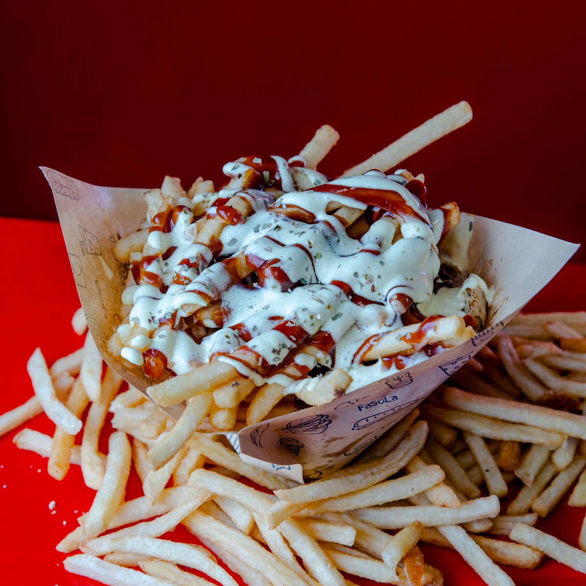 Beef Patty, Round Pinsa, Homemade Mayonnaise, Ketchup and Oregano. Served with French Fries