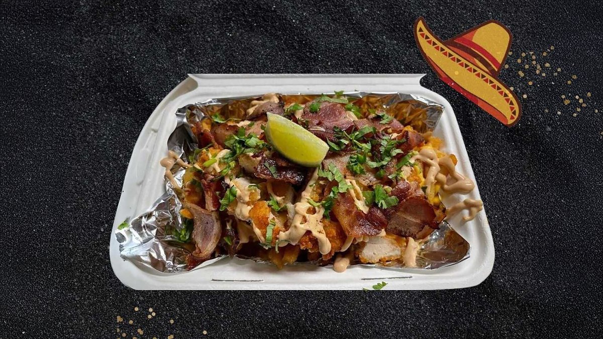 Crispy fries, crispy chicken, cheese sauce, jalapenos, chipotle mayo, and homemade salsa