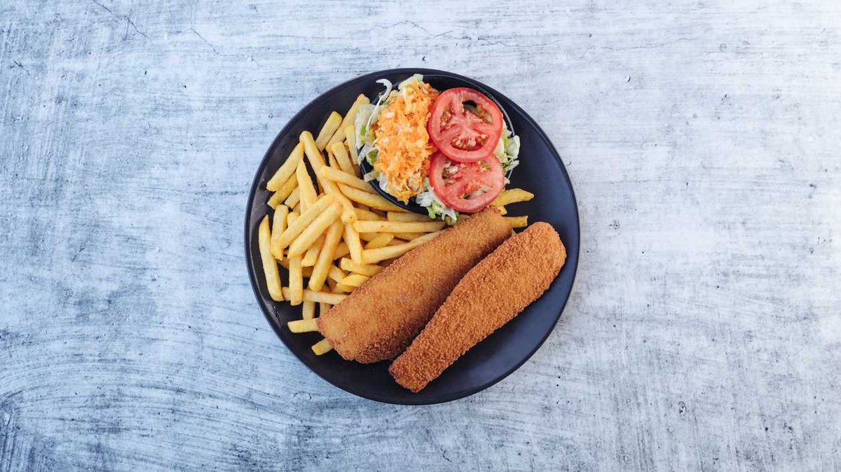 Beef, lettuce, tomatoes, coleslaw, caramelised onions, cheese, ketchup and mayo. Served with a side of crunchy chips