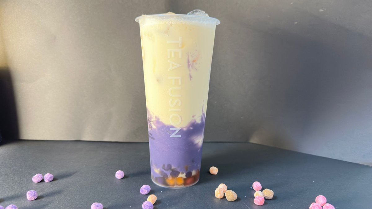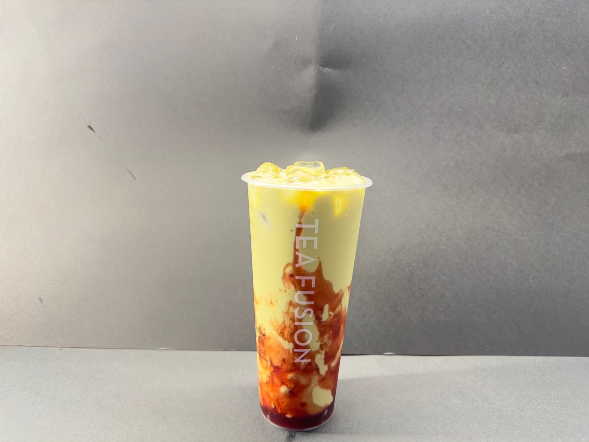 Brioche bun, beef patty and ketchup. Includes portion of fries, sauce and a soft drink