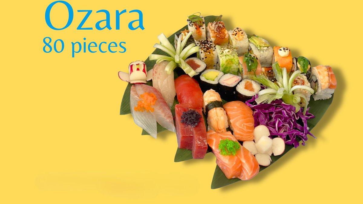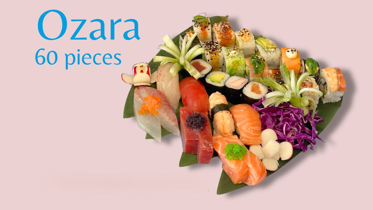 Including: 8 spicy salmon roll 8 chicken teriyaki roll 8 california roll 6 tuna hosomaki 6 crab hosomaki 8 jazz roll 6 salmon nigiri 6 tuna nigiri 6 prawn nigiri 6 white fish sashimi 6 salmon sashimi 6 tuna sashimi