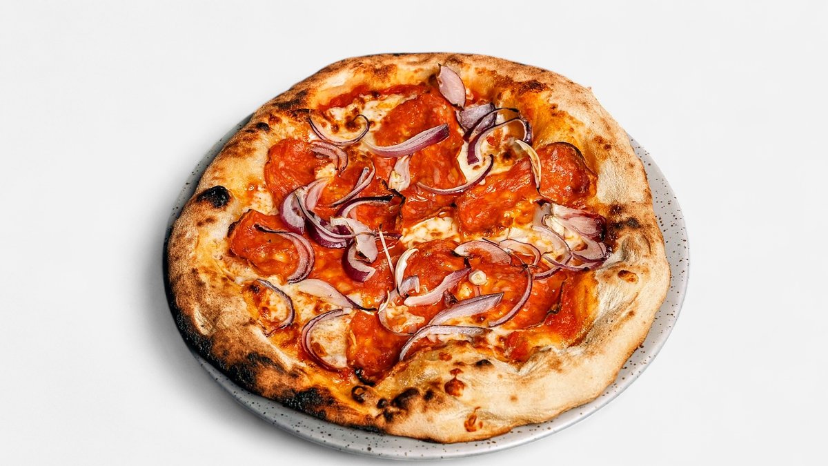 Minced beef, Cheese sauce, Scamorza, Bacon, Cherry Tomatoes, Pickled fennel and onions