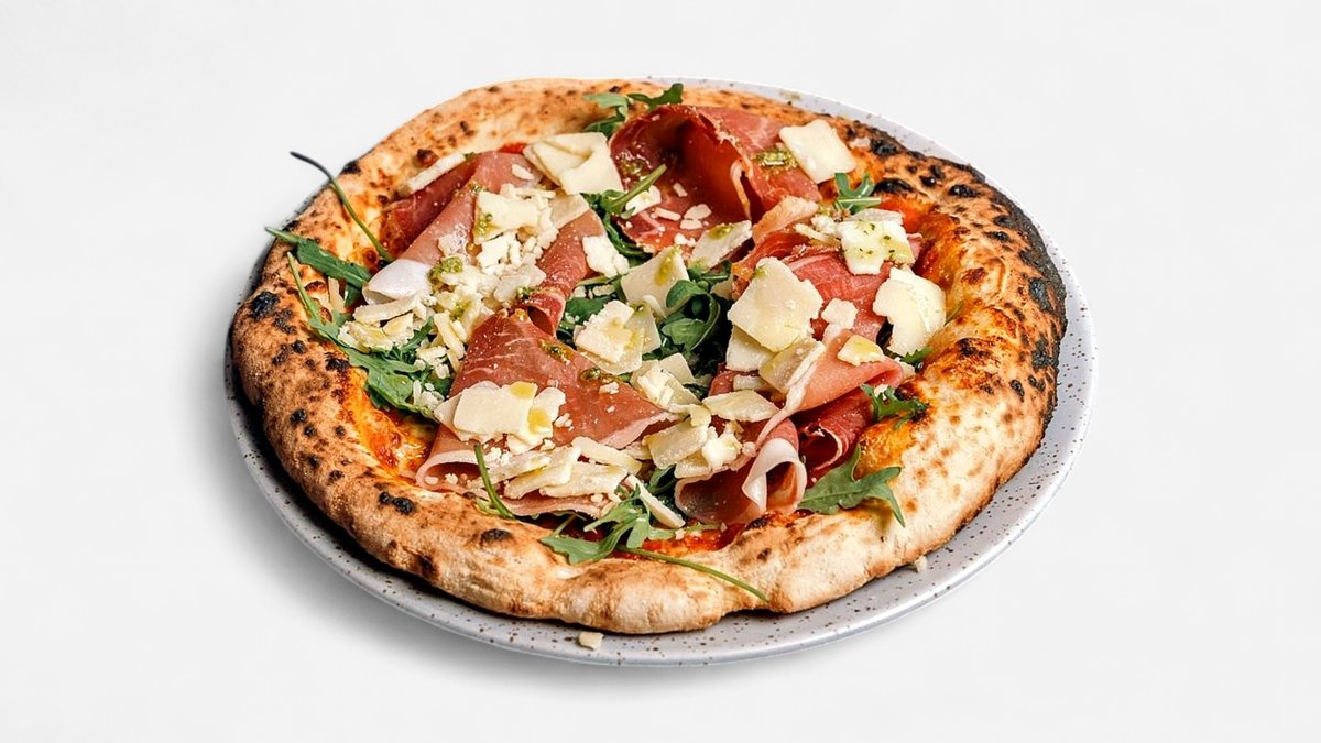 Tomato sauce, mozzarella, parma ham, parmesan and rucola