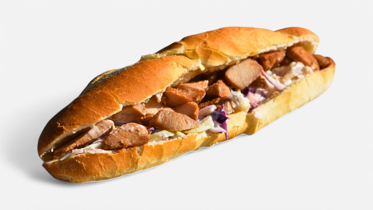A fresh baguette filled with tender chicken breast, creamy mayo, and crunchy coleslaw for a satisfying bite
