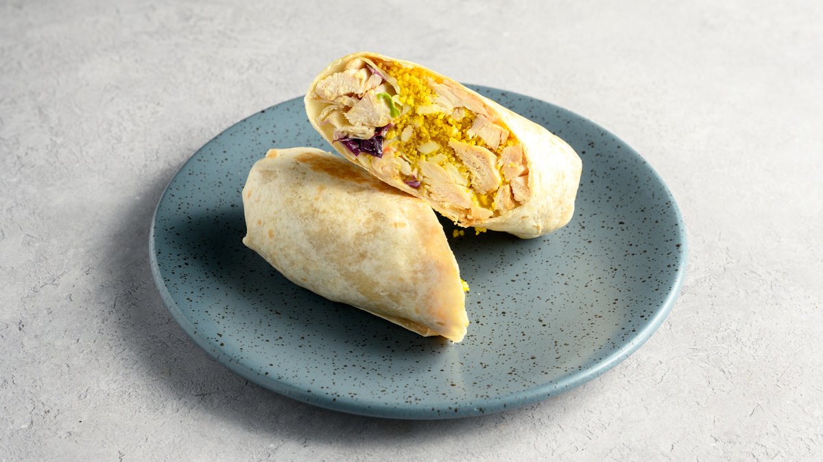 Chicken, couscous, mozzarella, coleslaw and barbecue sauce